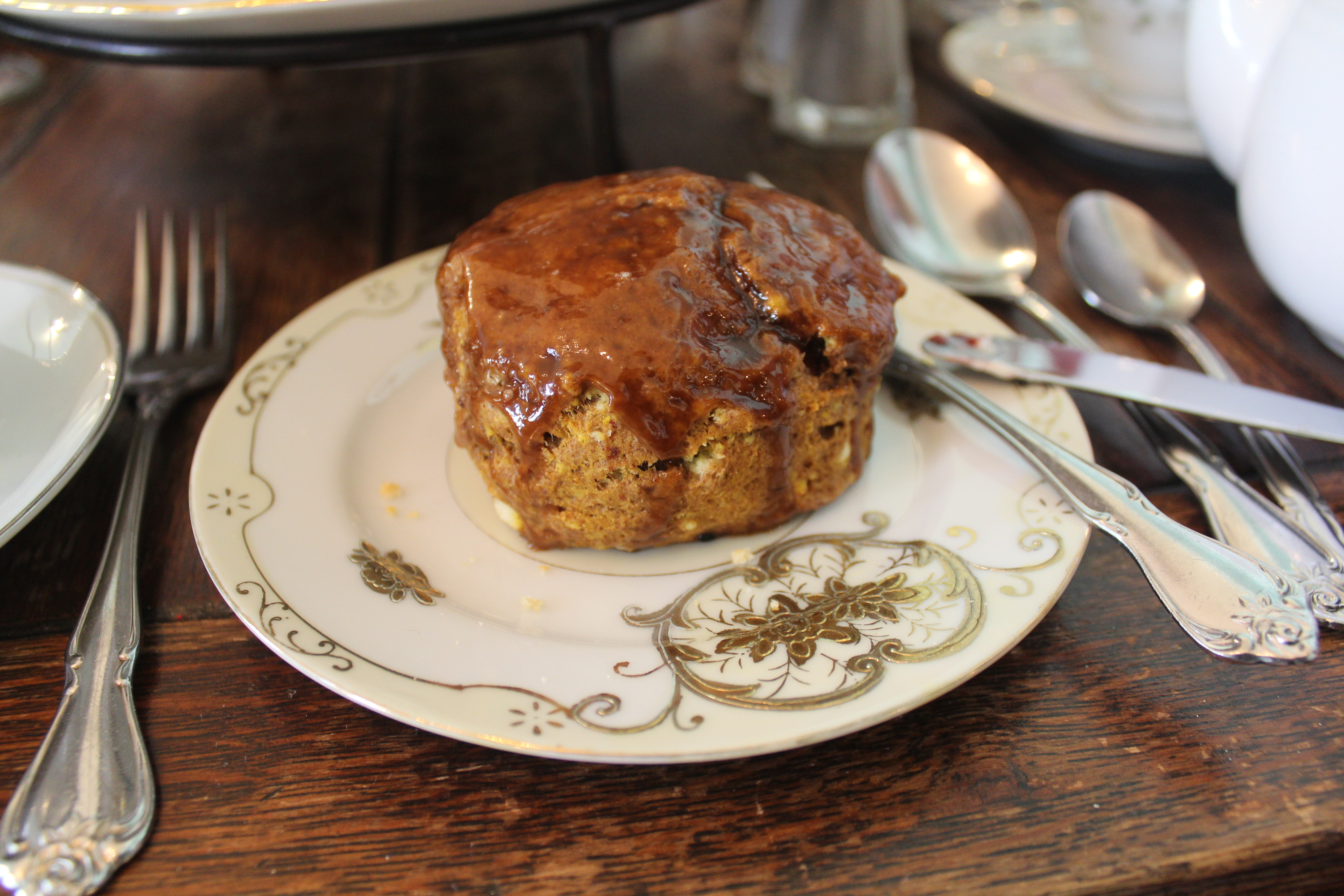 First up is their most famous scone – the pumpkin. This scone was differently shaped from the rest because it was more round than triangular. The scone had a pumpkin glaze, which was very sweet. The scone had such a nice pumpkin flavor! The sweet glaze made the scone so sweet that I didn’t even need any preserves or cream to go with it. Mmmmm!