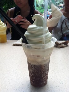 A lot of our quick service meals were unmemorable but there is one favorite that I must share. Aloha Isle, located in Magic Kingdom, serves up a wonderful Dole Whip float. Their soda floats are also a refreshing treat on a hot day. They both count as a snack option on the dining plan so I think this is your best deal for snack within Magic Kingdom.