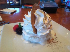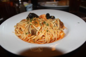 Both my mother and I went with their New York Strip Steak, which is cooked in a red wine sauce and served with potatoes and vegetables. This was one of the best meals I had during this vacation. The steak was cooked just the way I requested and retained a lot of juice. My sister went with their Seafood Diavolo, which featured linguini pasta with clams, mussels, calamari, shrimp, and fish in a spicy tomato sauce. Her dish was very flavorful and the spice was never overwhelming. I found myself stealing bites from her dish!