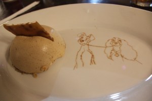 For our dessert, I went with their Pistachio Crème Brulee, which was very sweet. My favorite dessert was my sister’s Signature Cheesecake, which came with the cutest Lady and the Tramp syrup drawing. At first we thought that the drawing was etched into the plate but soon realized it was drawn on. Extra points for creativity!