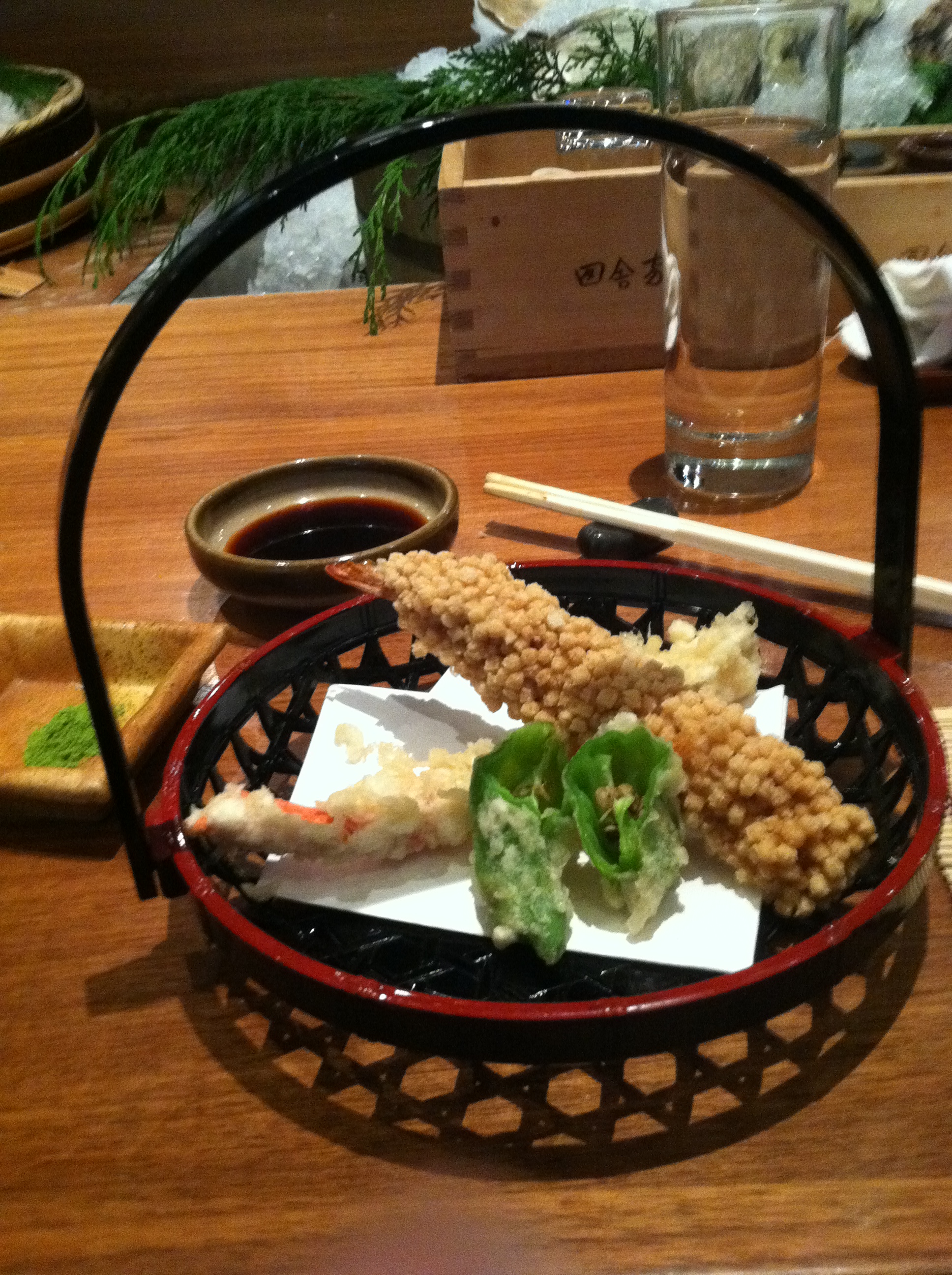 Our fifth course, or agemono, the fried course, was three kinds of tempura. We received shisho peppers, shrimp and crab leg tempura. The shisho pepper wasn’t very spicy at all and the shrimp was very crunchy and crispy. The best piece of tempura, however, was the crab leg, which was tender and soft.