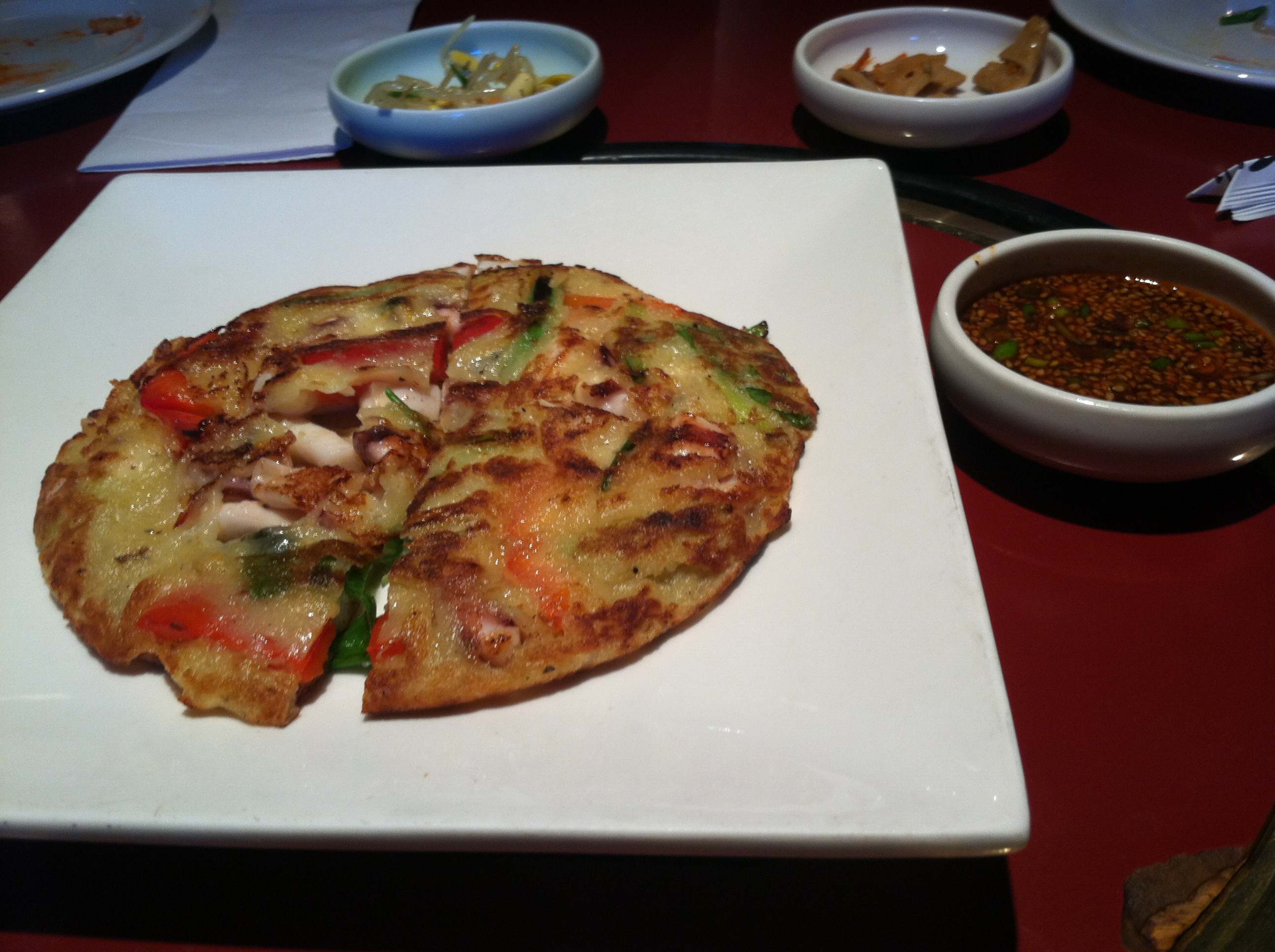 We opted to start with two seafood pancakes ($7.00 each). The pancakes are smaller than those you’d get at a typical Korean restaurant but they were pretty good. Both pancakes weren’t as crispy as I like them but they do satisfy the craving.