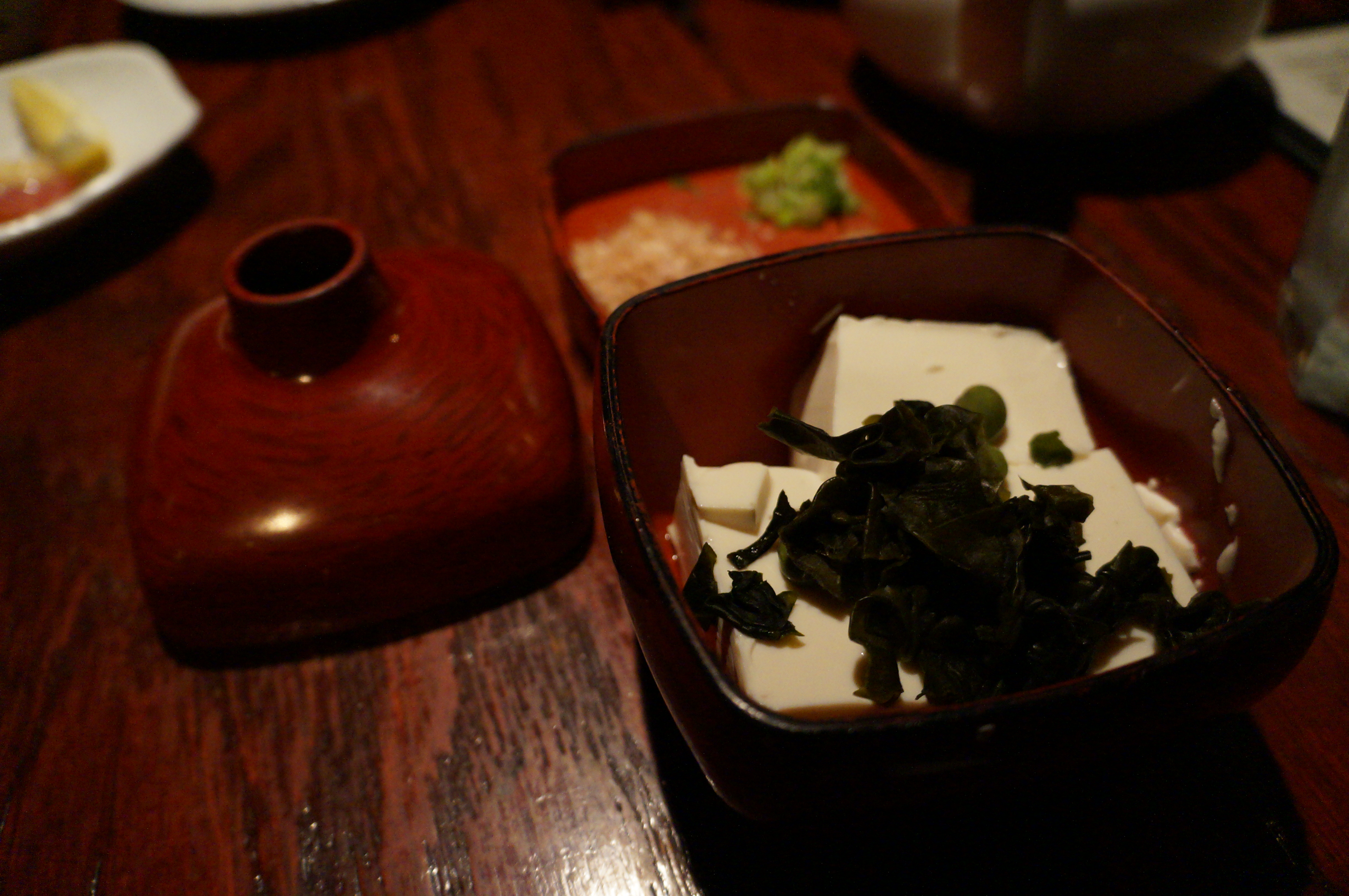 This time we were given a booth on the 2nd floor instead of the 1st floor. Last time, our booth was in between three other booths with couples on either side of us. This time, we were given a booth that was by itself with only one couple behind us. There was a little bamboo curtain that our waiter opened each time he approached our table. He would also alert us whenever he was about the curtain so as to not surprise us.