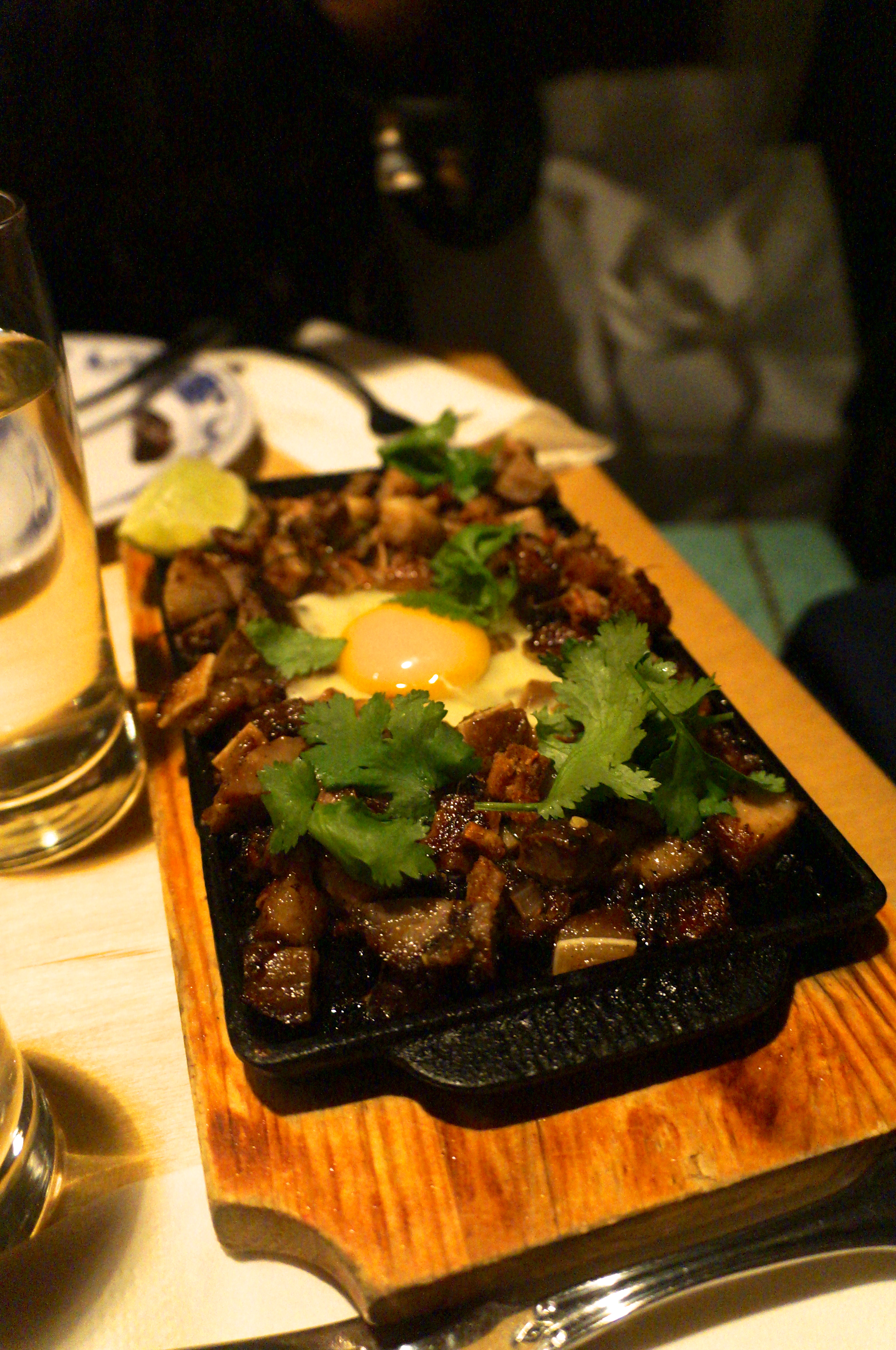 For a joint birthday dinner, our group of 10 people ended up at Pig & Khao for some Asian Fusion/Filipino food. I’ve had Filipino food before – the legit kind that you only find in the middle of Queens – so my standards are set pretty high. About half of us arrived right on time for our 6pm reservation while the other half was a bit later. They offer Happy Hour drinks until 7pm so we opted to get something to drink while waiting. All cocktails are $8 while glasses of Prosecco and Riesling are $5. They’re pretty generous with their wine pours so I think it’s their best bet.