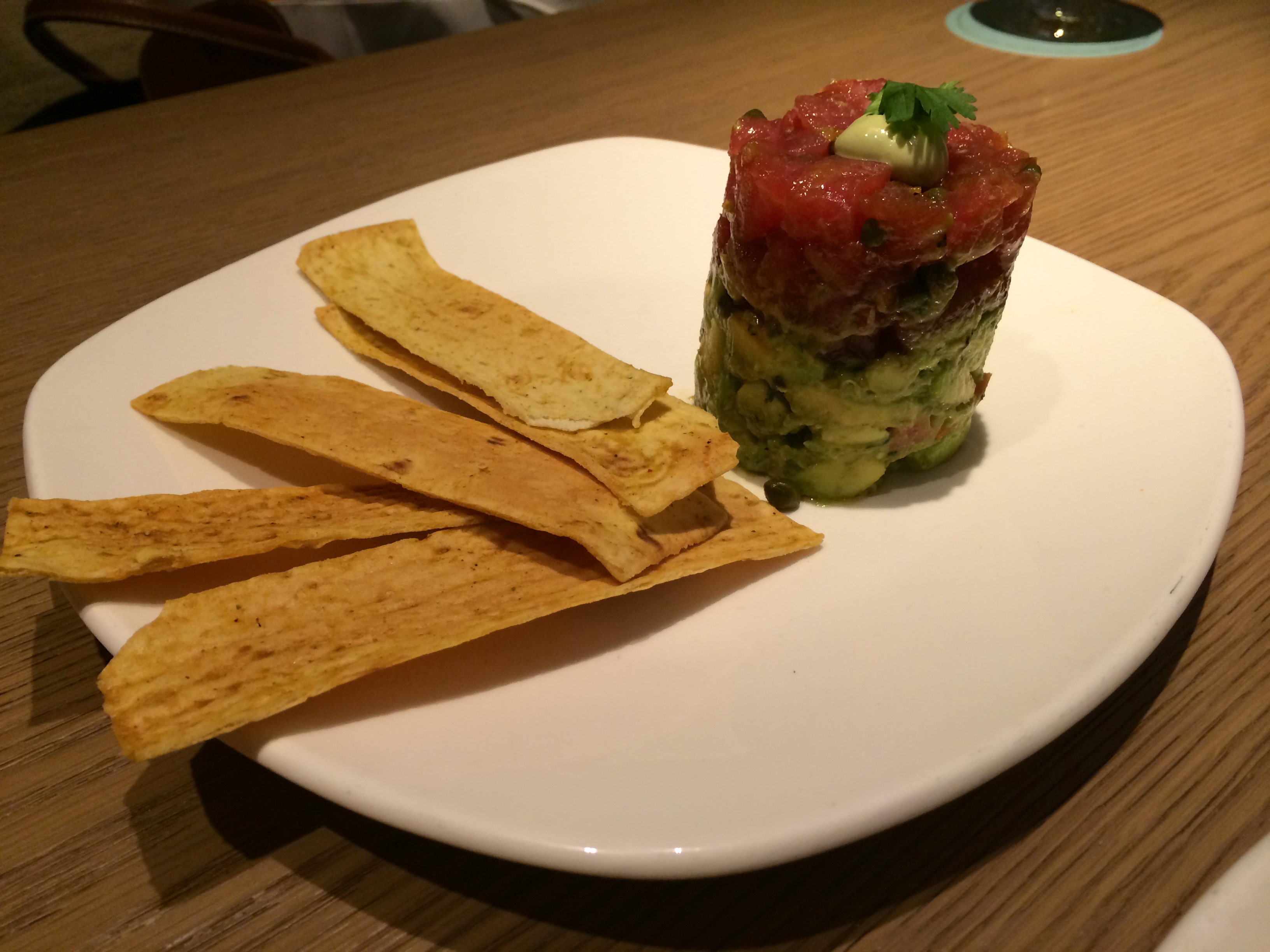 Next up was the Ahi Poke Napolean ($16.50), which features chunks of Ahi Tuna tossed with capers, guacamole and served with flatbread. I’ve been missing poke since we left Hawaii so this was definitely my favorite appetizer of the night. They did not skimp on the tuna at all – there was definitely enough tuna and guac to go round. Just like the tacos, the tuna was super fresh and I quickly gobbled up more than my share.
