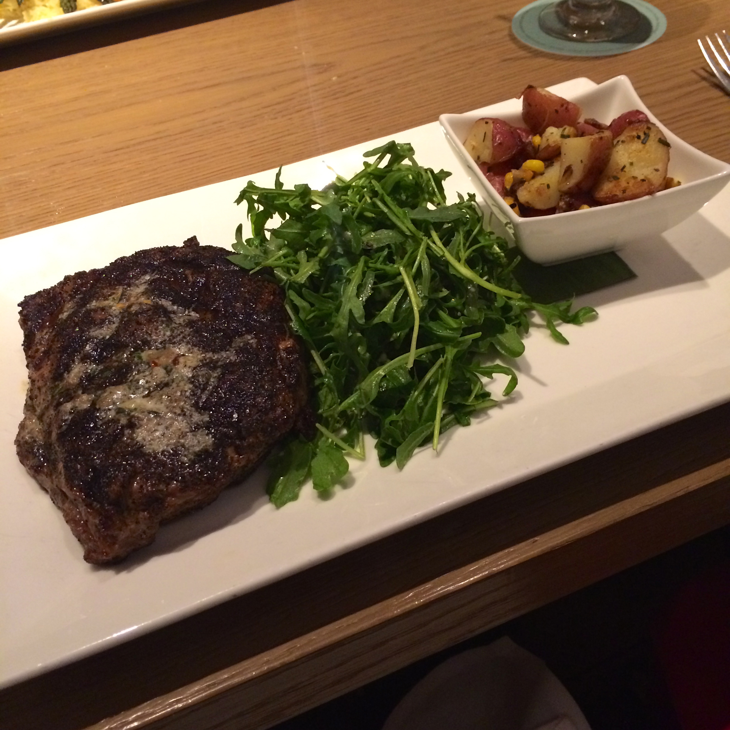 For my entree, I went with the Kona Coffee Crusted Ribeye ($29.00), which is served with a warm potato salad and a light salad. The salad and potatoes definitely helped balance out the savory steak. I’ve only had Kona Coffee steak before once before and this one really put up a good fight. It was tender and flavorful. The portion size is also insanely large!