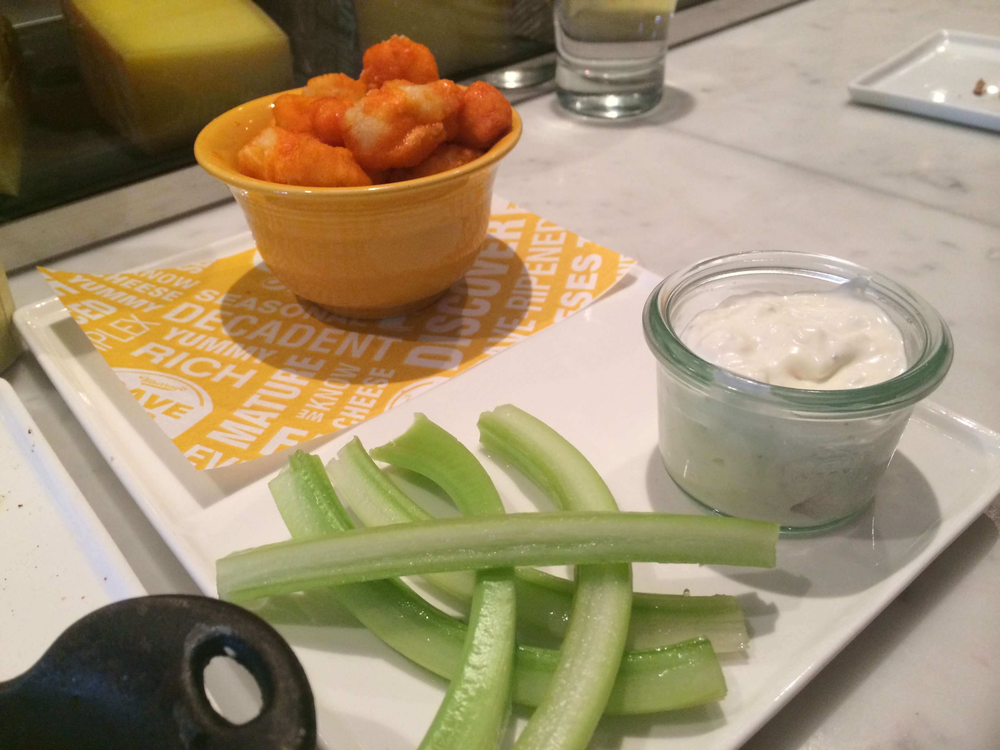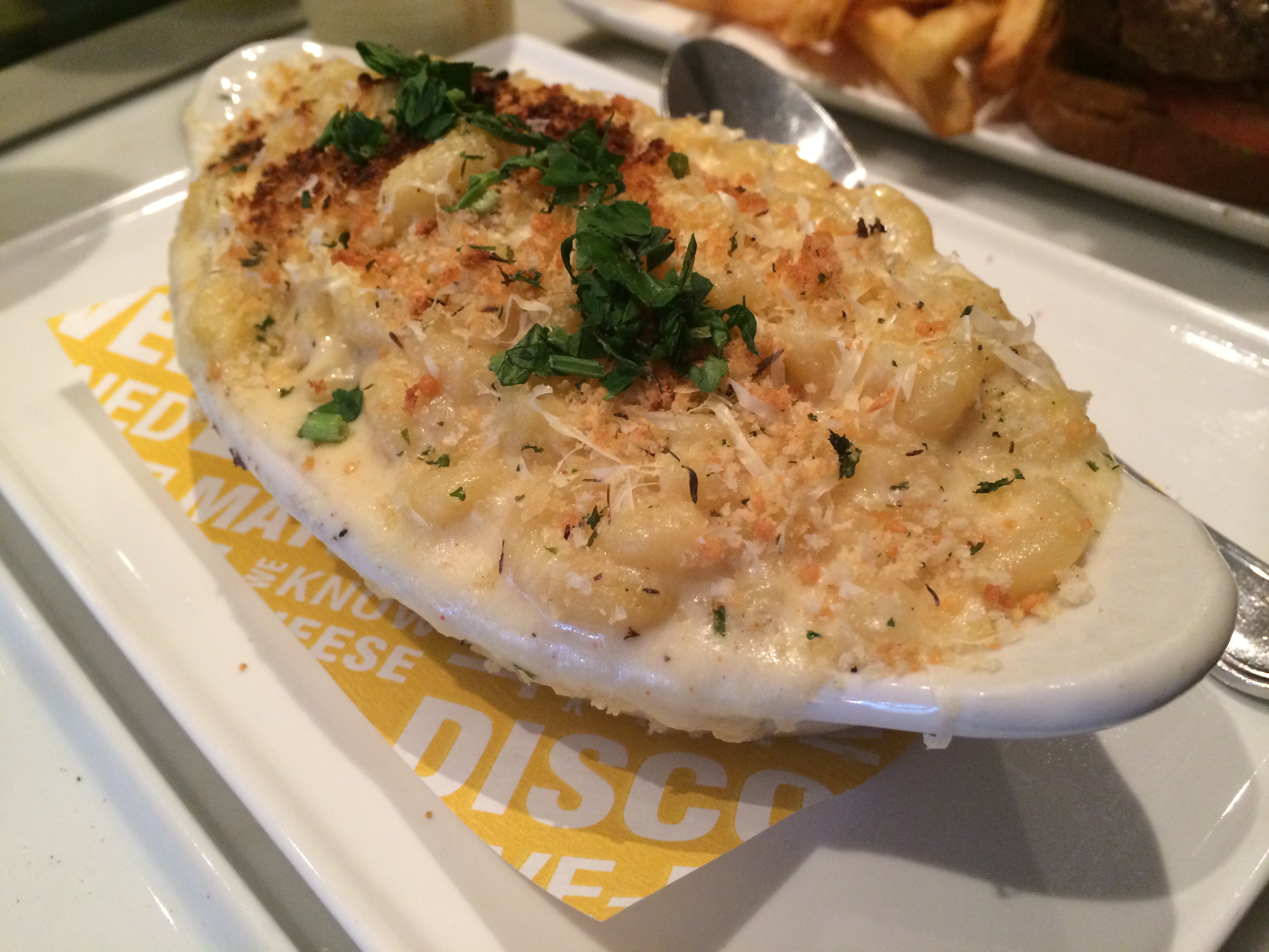 When I told the Boyfriend that I was craving something cheesy, he came up with Murray’s Cheese Bar, which is located down the block from their larger cheese store. Everything on their menu has at least one type of cheese in it and they also do cheese plates. It’s practically every cheese lover’s dream! There were so many options to choose from that we had trouble making our decisions. Luckily our waiter was very knowledgable and was able to give us some recommendations, which split between the two of us.
