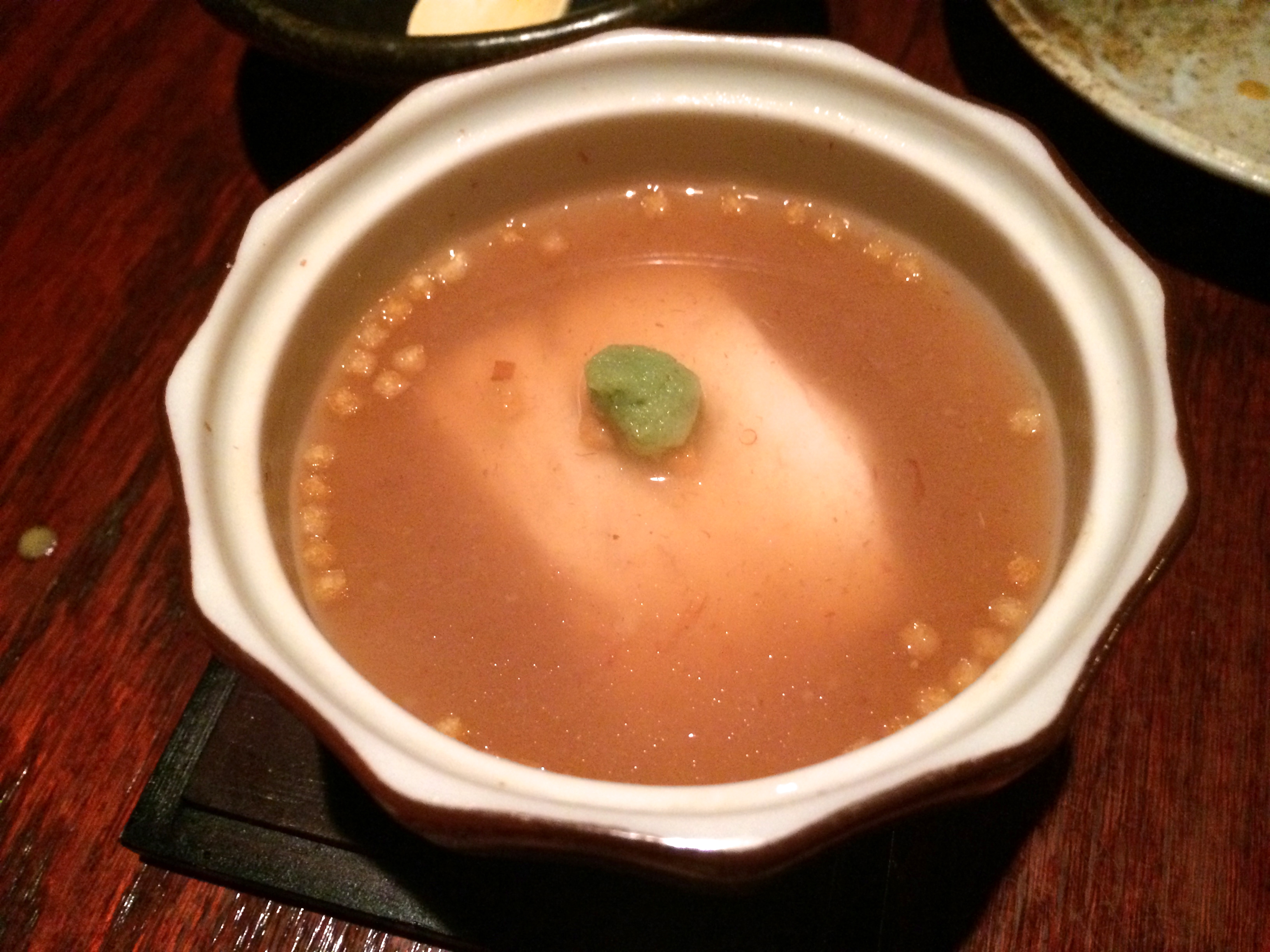 Usually, if you’re a repeat customer, they give you a little dish to nibble on compliments of the chef. We’ve had different types of fish given to us before – this time we were presented with steamed eggplant in broth. I love how they do this – it’s often not much but it’s a great way to show appreciation to repeat customers.