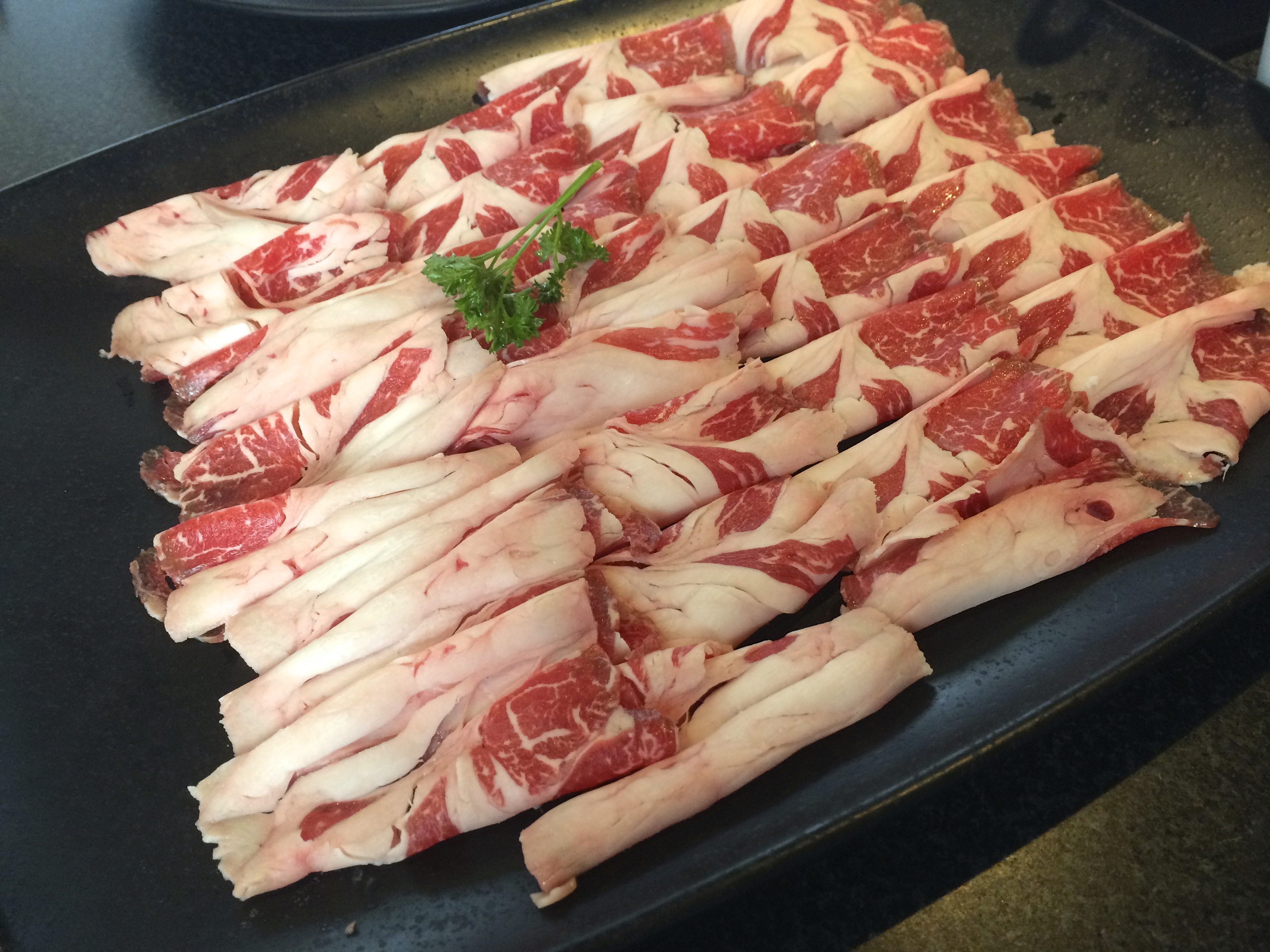We ordered a variety of items to try – I especially like that you can order half orders of items. First up was the beef slices, which we got a full order of. The beef was very tender and cooked quickly. No sign of any freezer burn or frost on the beef!