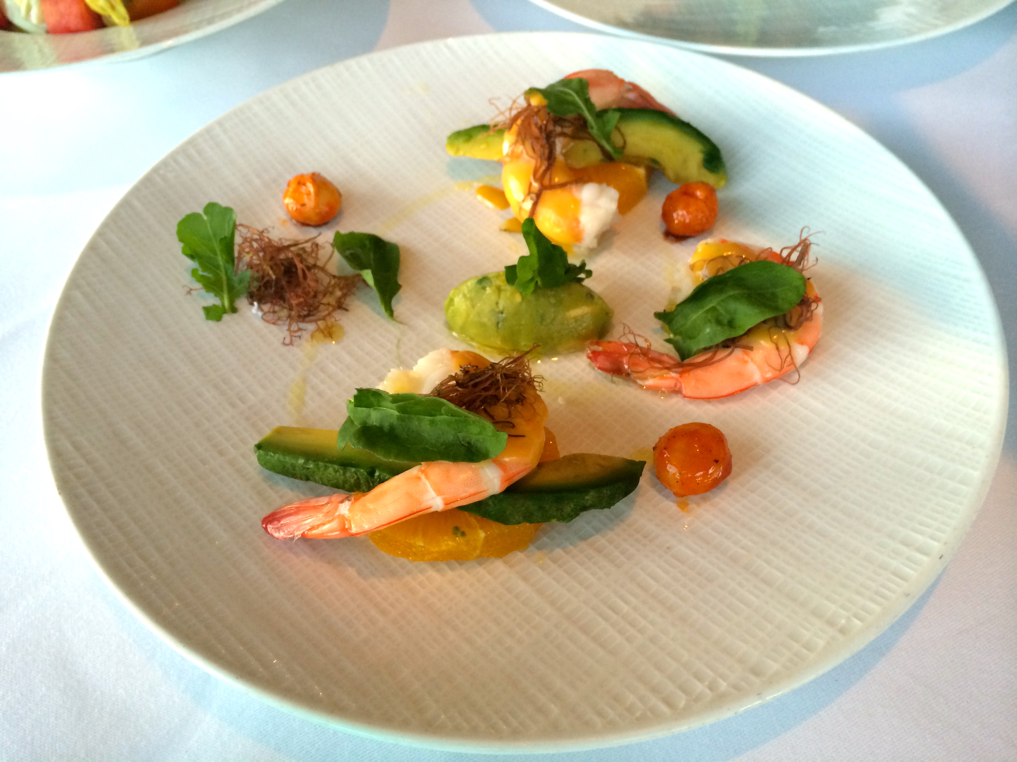 We started with a lovely amuse bouche of potato chowder, followed by a breadbasket with three spread options: pomegranate with olive oil, butter with Hawaiian pink salt and butter with Hawaiian black salt. All were quite tasty – I particularly liked the butter with Hawaiian pink salt.