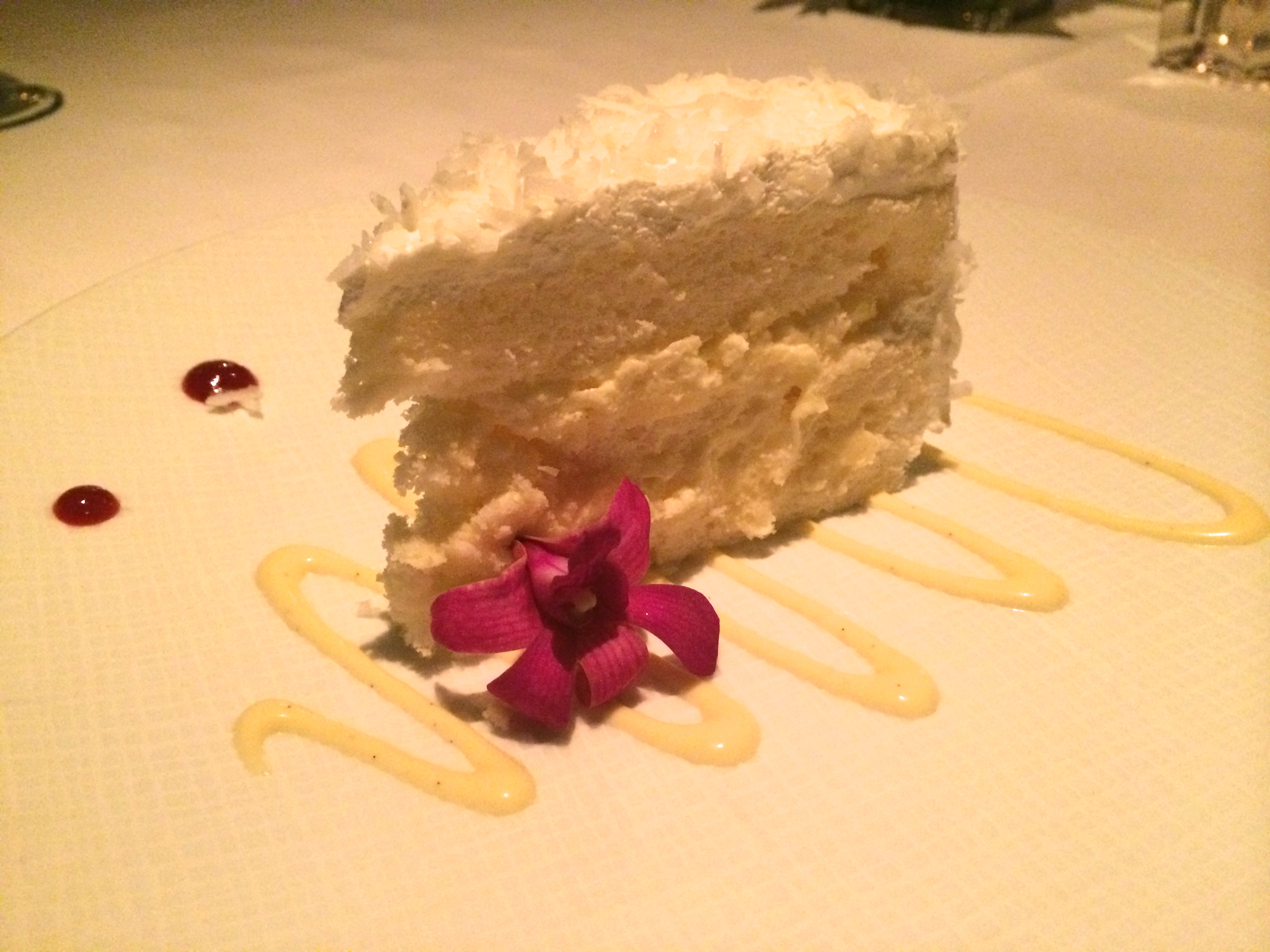 For dessert, we all split the Halekulani’s Signature Coconut Cake ($11.00). You can’t go to any of the Halekulani’s restaurants and not order this cake! The chiffon cake was as light as a cloud! The coconut-amaretto cream and whipped cream was not too sweet – just enough to be considered dessert. I’m a huge fan of coconut so this was a special treat for me.