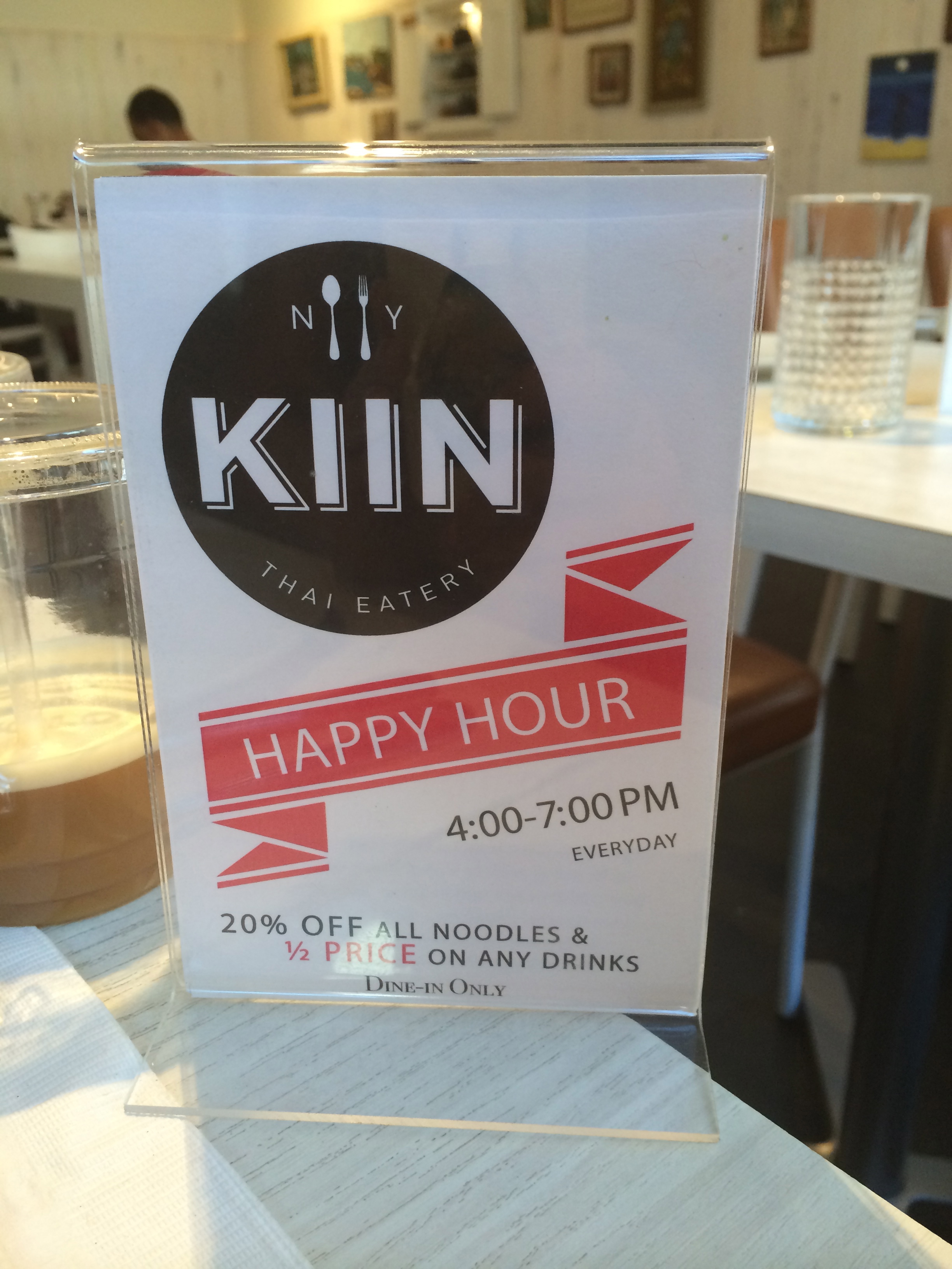 We arrived at around 6pm on a weekday night and were seated by the windows. They run Happy Hour every day from 4pm to 7pm. You get 20% off all noodle dishes and ½ off the price of all drinks. It’s a pretty sweet deal since it’s basically buy-one-get-one free cocktail.