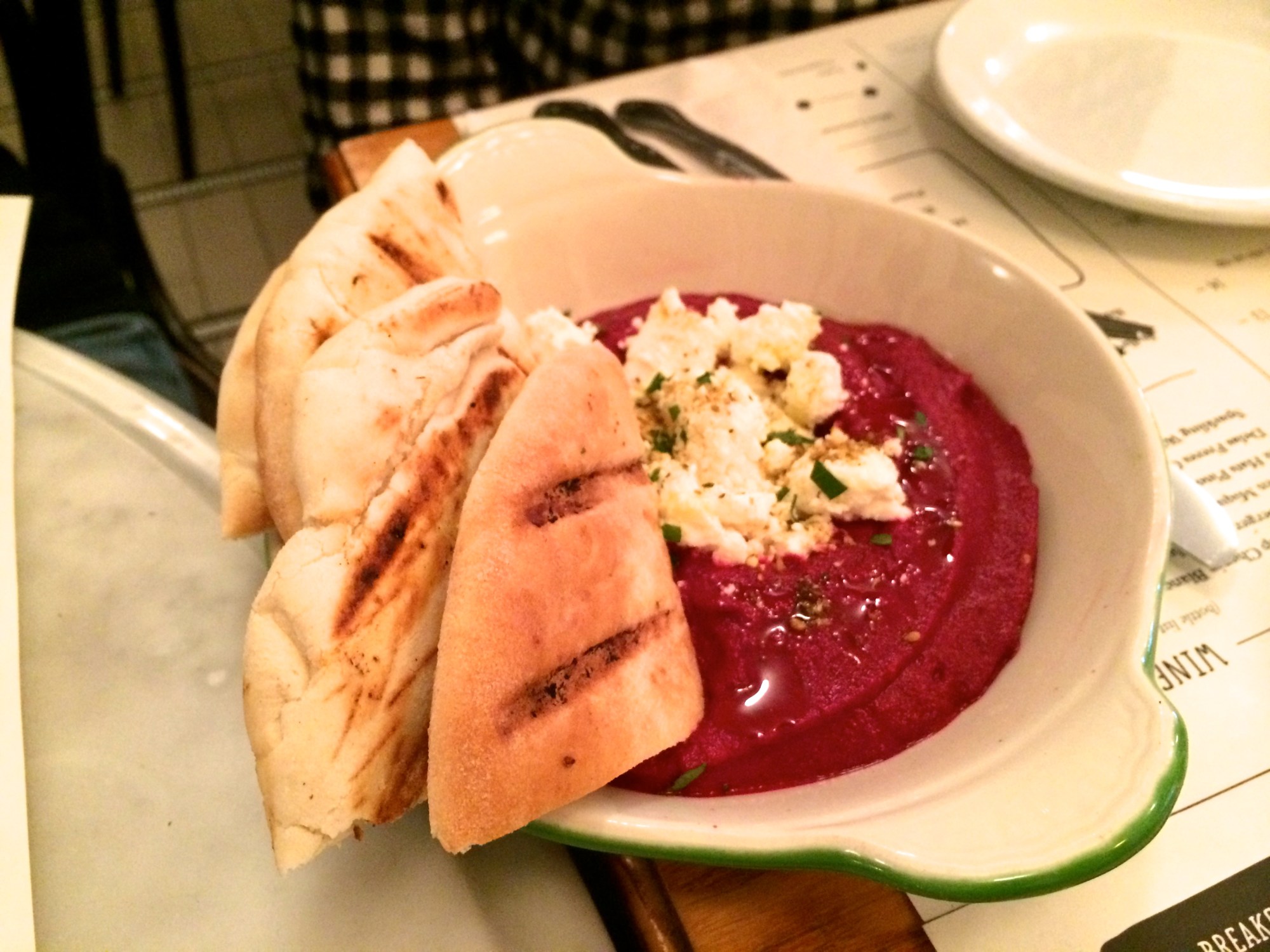 We opted for two appetizers to share: the Salt & Pepper Eggplant ($8.00) and Spiced Beet Dip ($9.00). The Salt & Pepper Eggplant was diced into cube-like shapes and then lightly fried. The cubes are paired with a delicious Tzatziki sauce that I actually used later to eat the fries. The Spiced Beet Dip was a nice surprise. I was a bit apprehensive about it since I’m not usually a fan of beets but it was pretty good. The dip was a bit sweet and was topped with one of my favorites – goat cheese. The Beet Dip was served with warm pitas, which I quite enjoyed.