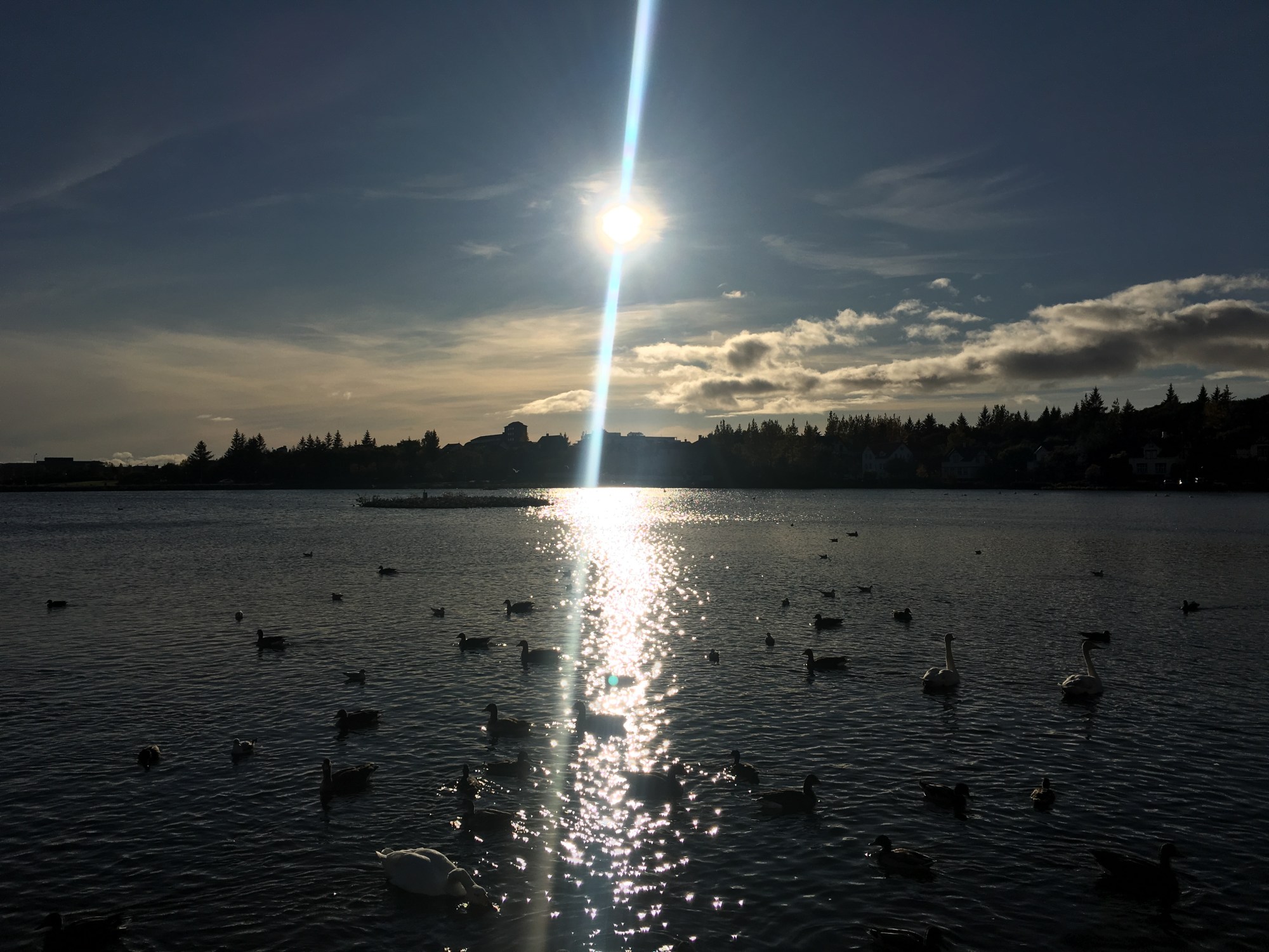 We ended our day at Tjörnin, a prominent small lake in central Reykjavík. The lake is often visited by over 50 species of water birds. We definitely saw some geese, ducks, and swans. A lot of them were bobbing by looking for bread!