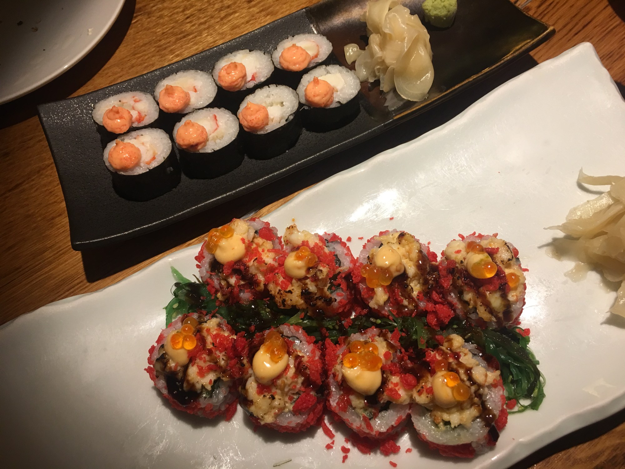 We had the Volcano Langoustine Maki, featuring langoustine tartar with sesame oil, 7 spice, and chili on top of a maki roll filled with salmon and cucumber. This roll was very busy and really exploded with flavor in your mouth.