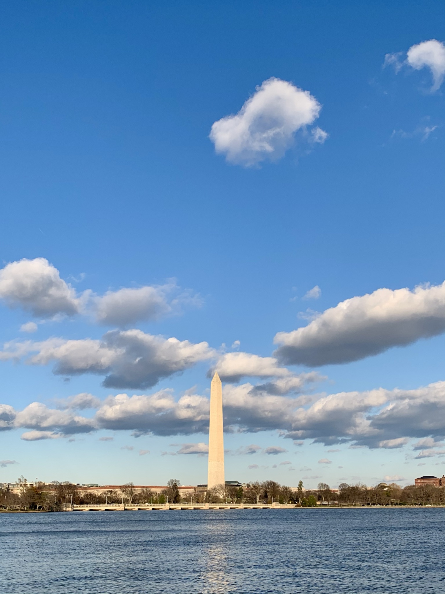 As you walk along the western shore of the Tidal Basin, you get an amazing view of the Washington Monument across the Basin.
