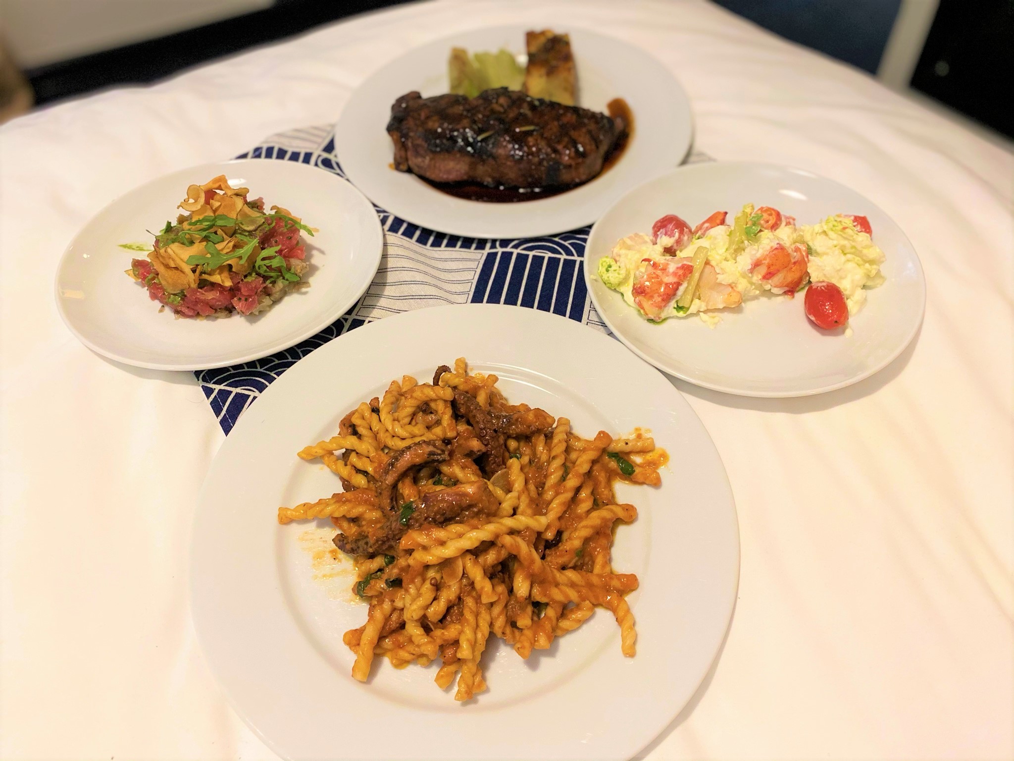 After settling in and turning on my favorite hotel show – Diners, Drive-Ins, and Dives – we placed our order for dinner at Marea, one of my absolute favorite restaurants. Pick up was super easy and our food was phenomenal.