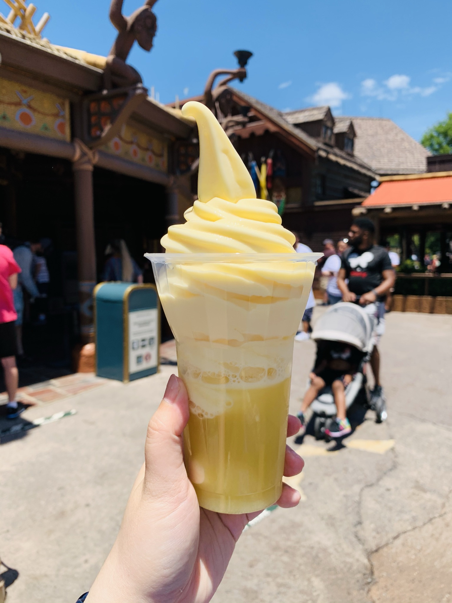 First up, my absolute favorite, must-have snack whenever I’m at Disney World – Dole Whip. You can grab a Dole Whip at Magic Kingdom’s Aloha Aisle, Storybook Treats, or Sunshine Tree Terrace and Animal Kingdom’s Tamu Tamu. Sometimes you can grab a Dole Whip at Epcot as well, if a festival is going on. If you’re not visiting the parks, you can also grab a Dole Whip in Disney Springs at Marketplace Snacks.