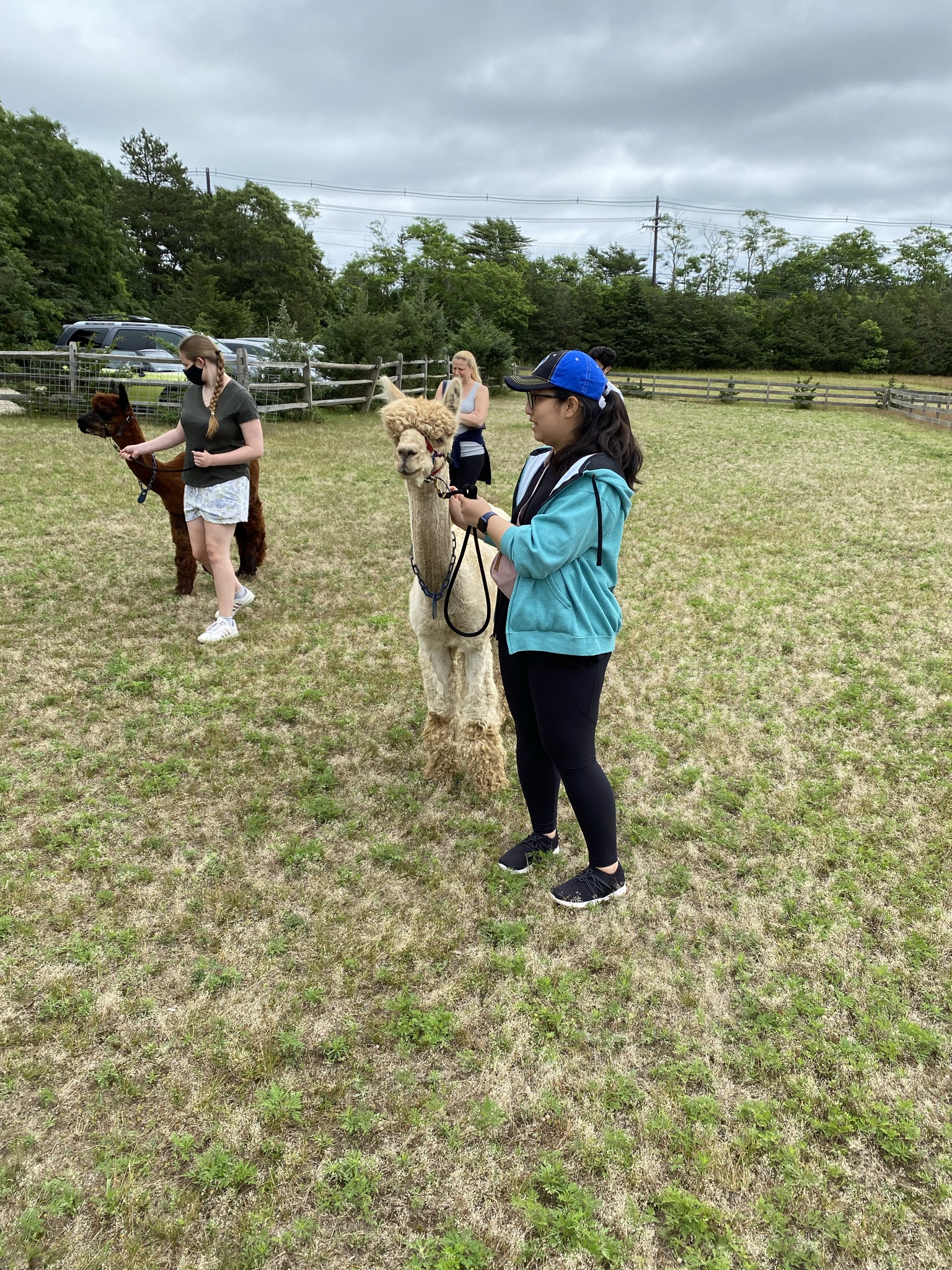 After our walk, we called an Uber for a short ride over to Island Alpaca, where I had a very special activity planned. Island Alpaca is an alpaca farm located just a few minutes from Oak Bluffs. I had booked an Alpaca Walk with them a few weeks prior – $30 per person for their own alpaca and $20 per additional person sharing that alpaca. For the four of us, had two alpacas, Khan Dor and Atticus. You get roughly 20-25 minutes walking the alpacas, with tons of opportunities for pets, nuzzles, and photo ops!