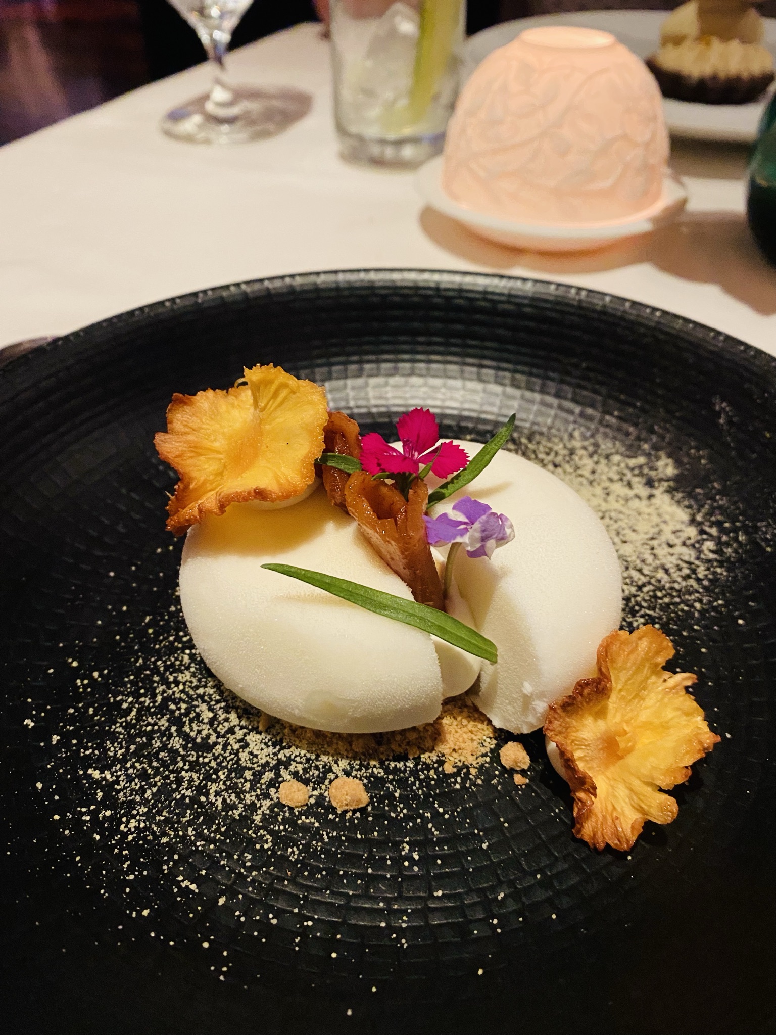 For my dessert, I asked our waiter for his recommendation and he told me that the Semifreddo was not too sweet. And if you know me, you know those words are often what I use to describe desserts that I like. Served with roasted pineapple, rosemary, and honey sabayon, the semifreddo was indeed not too sweet and the perfect recommendation.