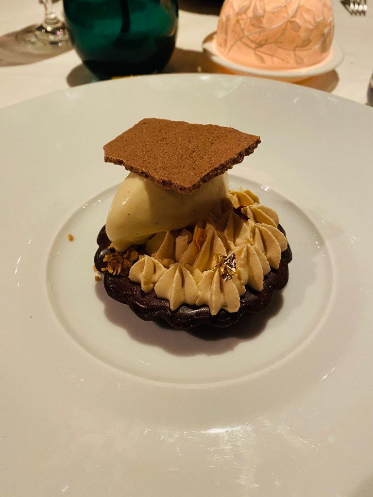 X decided on the Tartaletta, with dulcey café ganache, salted caramel, and rum gelato. The rum gelato was my favorite part, as I thought the tart itself was a bit too sweet for my tastes. X loved it.