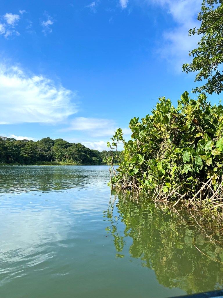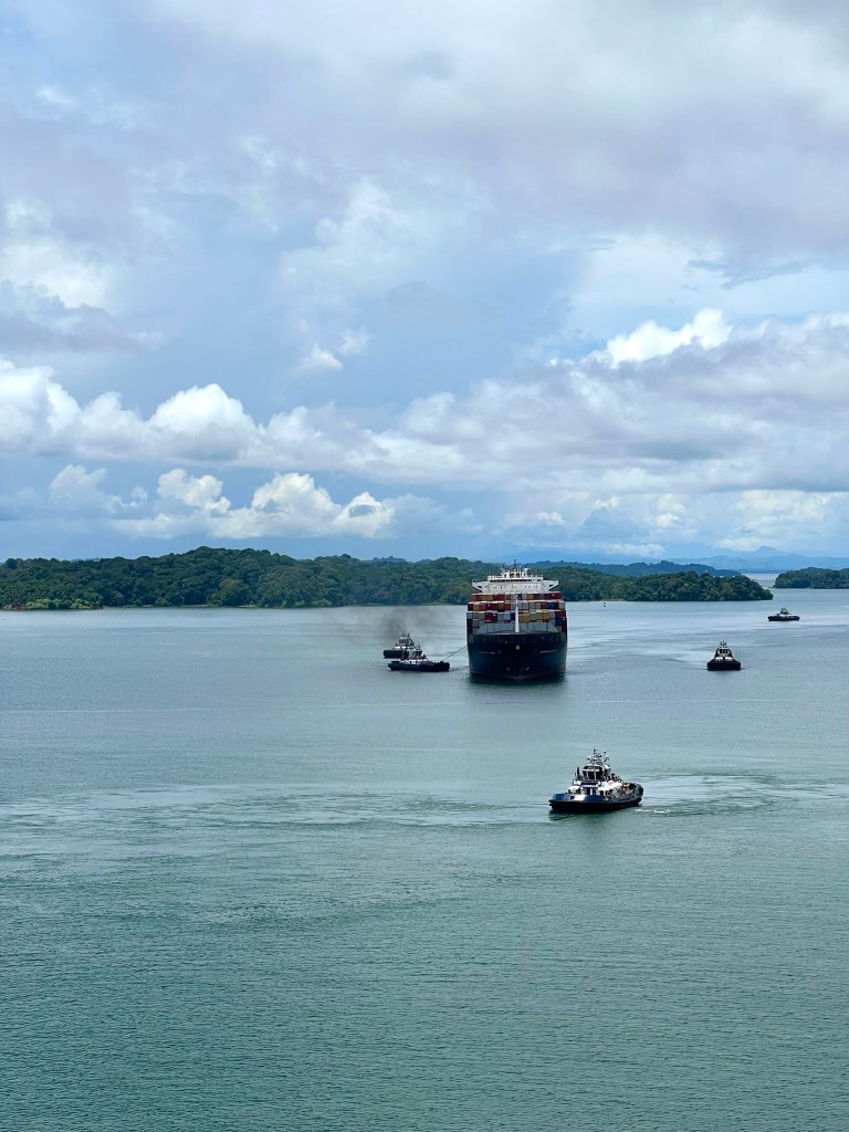 Our tour started off with a boat ride in Gatun Lake, a large freshwater artificial lake that makes up most of the Panama Canal. The Lake ranges 21-miles (33-km) and is where most of the large ships travel through in between transit of the Canal locks. The lake’s main function is to hold water in the Gaillard Cut for canal passage. It was really neat to be able to be in the Lake right next to the large shipping containers that we would see go through the Canal locks later in the day.