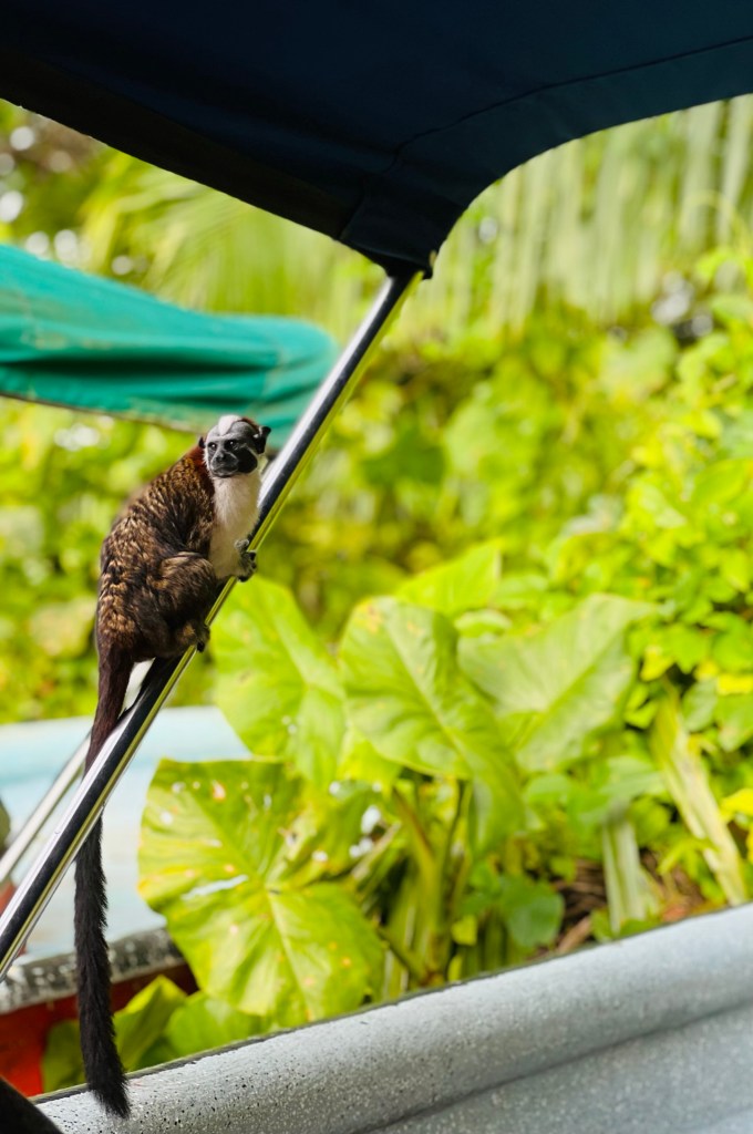 During our boat ride, we were able to spot a bunch of wildlife, including toucans, two different monkeys, and tiny little bats. We saw the Panamanian White-faced Capuchin as well as the Geoffroy’s tamarin, also known as the Panamanian red-crested or rufous-naped tamarin. The boat drivers are really good at spotting the wildlife and Panama Day Trips is adamant about not feeding the monkeys, as any human food is either too biologically engineered or too sugary for the monkeys. I really appreciated this and felt good about giving them our money.