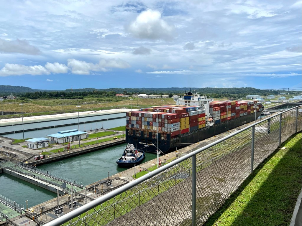 Our next stop on the tour was the Agua Clara Locks Visitor Center, located in the town of Colón. The Agua Clara Locks opened in 2016, as part of the Panama Canal expansion project, which doubled the capacity of the Panama Canal by adding 2 new locks on each end of the canal. The Visitor Center offers a panoramic view, including the ships coming in from Gatun Lake and through the 3 chambered locks of Agua Clara. As ships enter the locks, narration with facts about the Panama Canal and Agua Clara Locks are offered in both Spanish and English. This was really cool to watch, albeit a bit of a slow going process. A true wonder of human engineering!