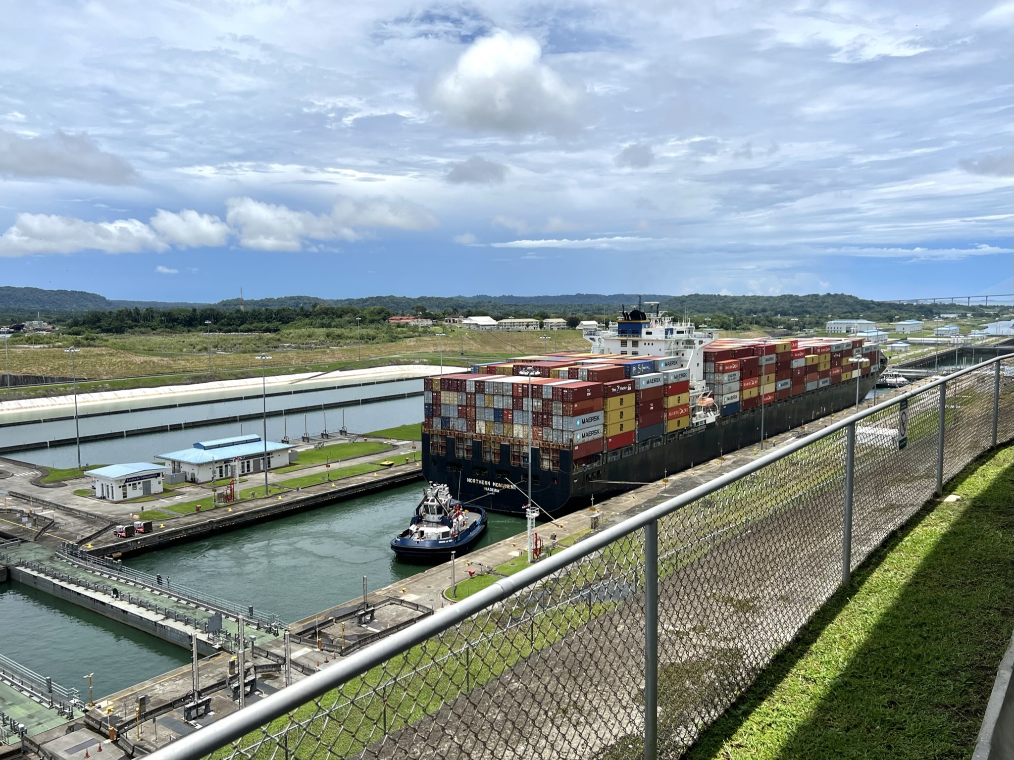 There are a few ways to see ships passing through the locks at the Panama Canal. The Miraflores Visitor Center is the most popular, but at the time of this post, the museum and cafe there are still closed. There is also the San Pedro Locks, where you can stop off the side of the road to see a ship pass through. I would recommend the Agua Clara Visitor Center, where you can get a panoramic view of Gatun Lake, the Panama Canal, and the 3 sections of the Agua Clara Locks. If there’s fog, then passages are usually delayed. There are apps that you can download to check when ships will be passing through so you can time your visits.