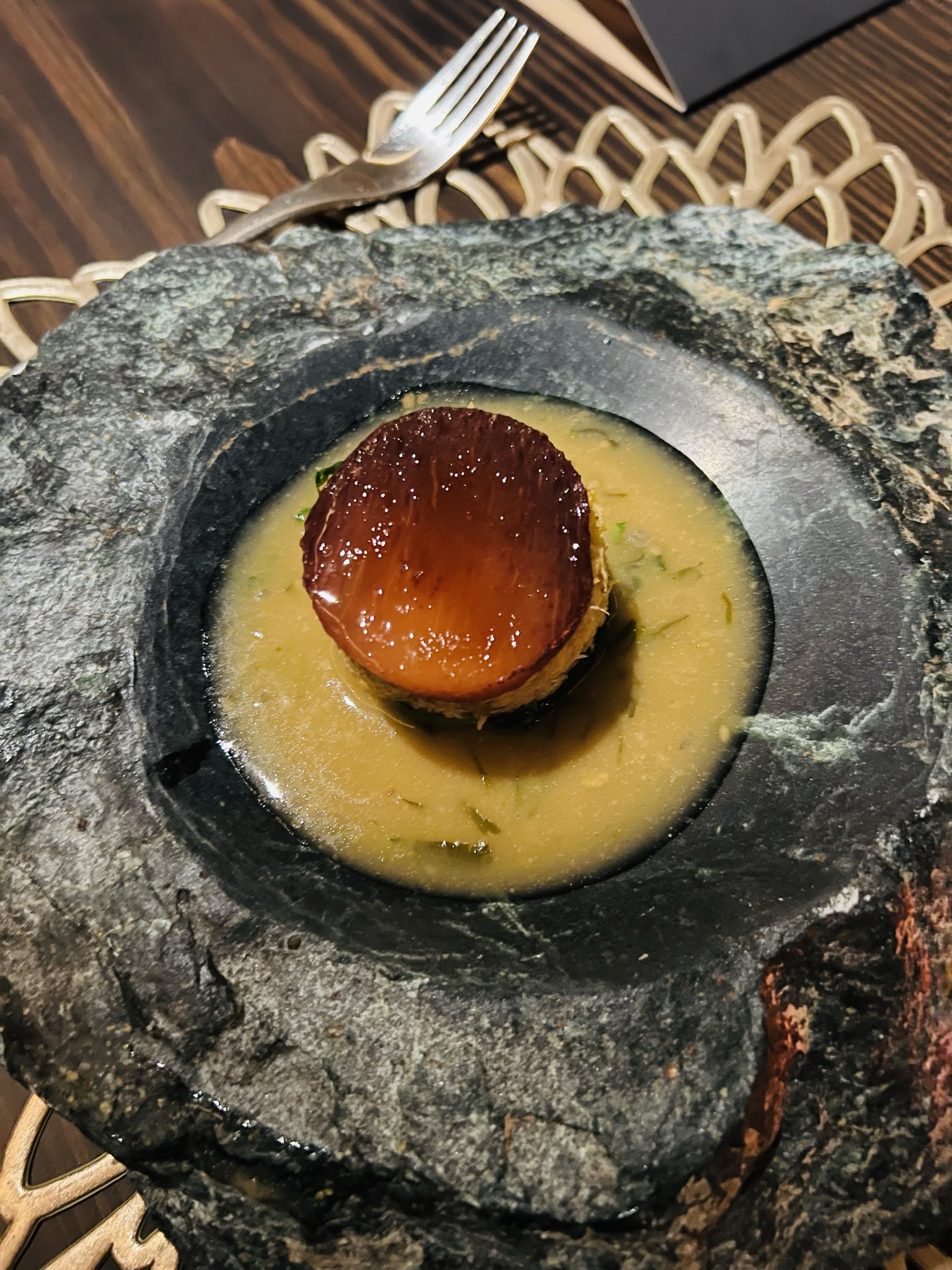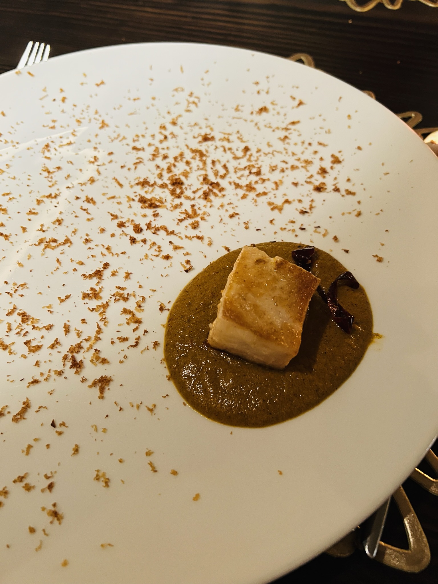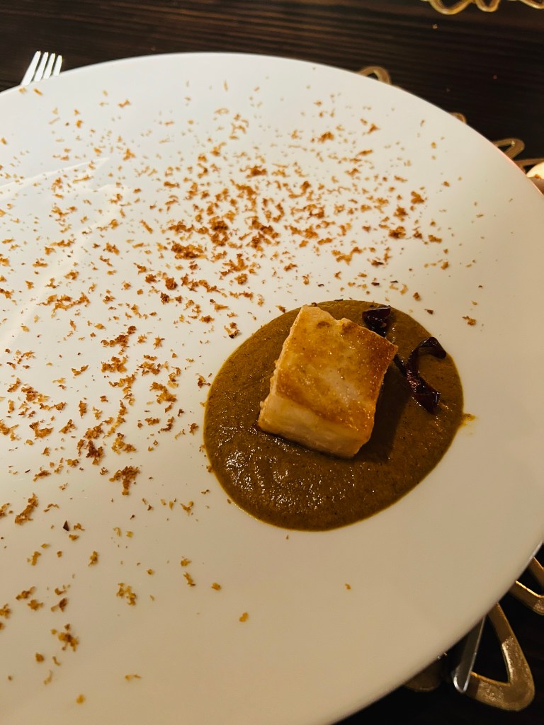 Sea Bass with zapuyul sauce, the seed of the Mamey Sapote tree