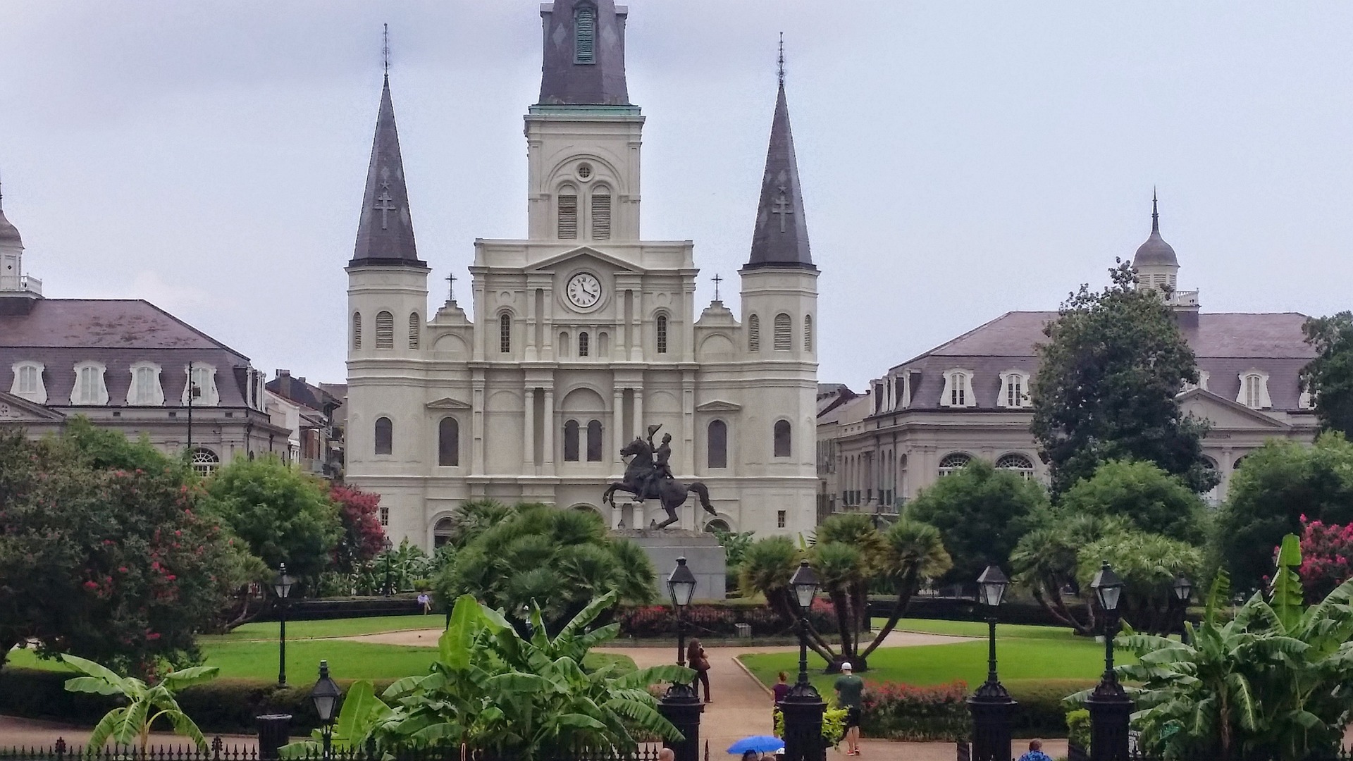 Stop by Jackson Square, a historic park where they used to hold executions and public punishments. In the center of the square is a bronze statue of Andrew Jackson. On the other side is St. Louis Cathedral, a 1700s church with beautiful stained glass and a painted ceiling.