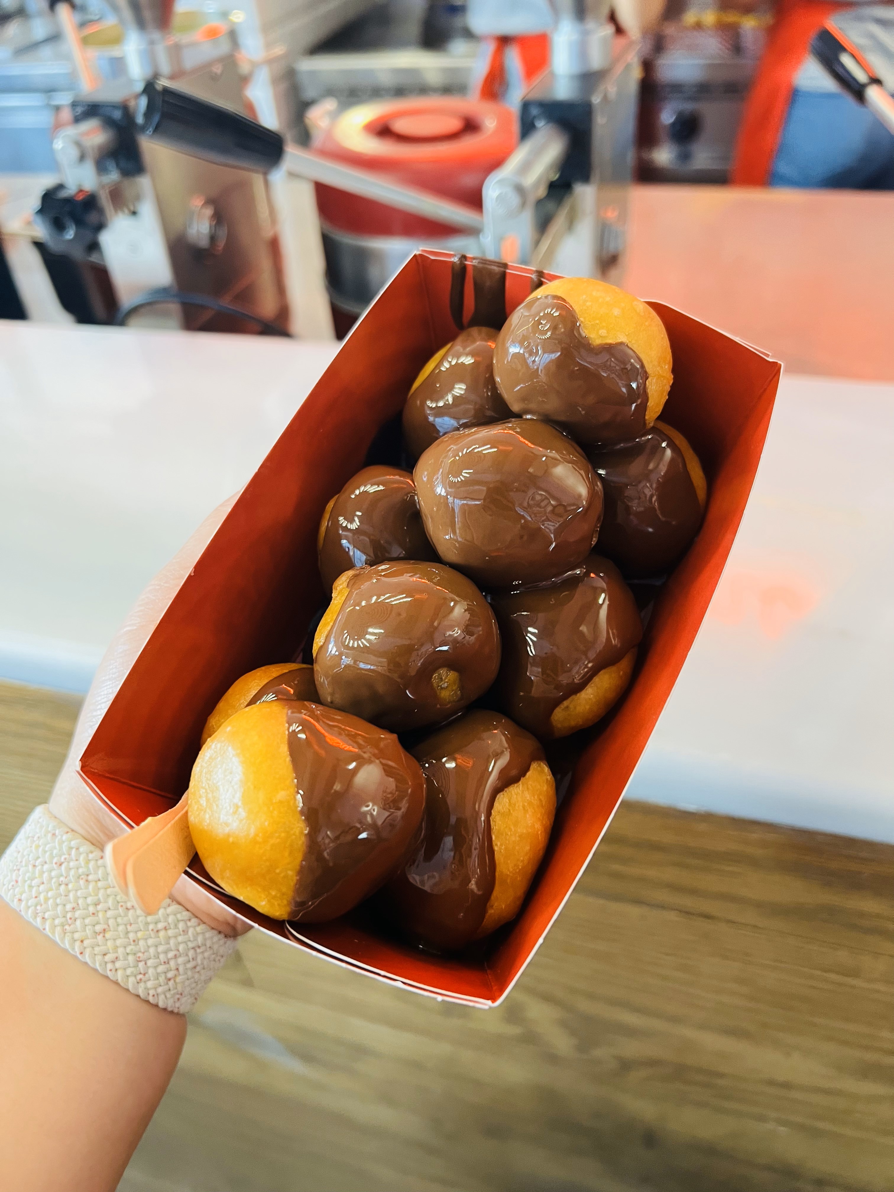 After grabbing a gyro at Hoocut, head down the street to Lukumades, or LUKUMAΔΕΣ, a famous spot for lukumádes, or Greek donuts with honey. The little dough balls are fried until golden and then dunked in homemade honey syrup and topped with nuts. You can also top it with a multitude of other toppings like milk chocolate, dark chocolate, white chocolate, pistachios, etc. I preferred the original with honey and cinnamon but the dark chocolate was fantastic as well.