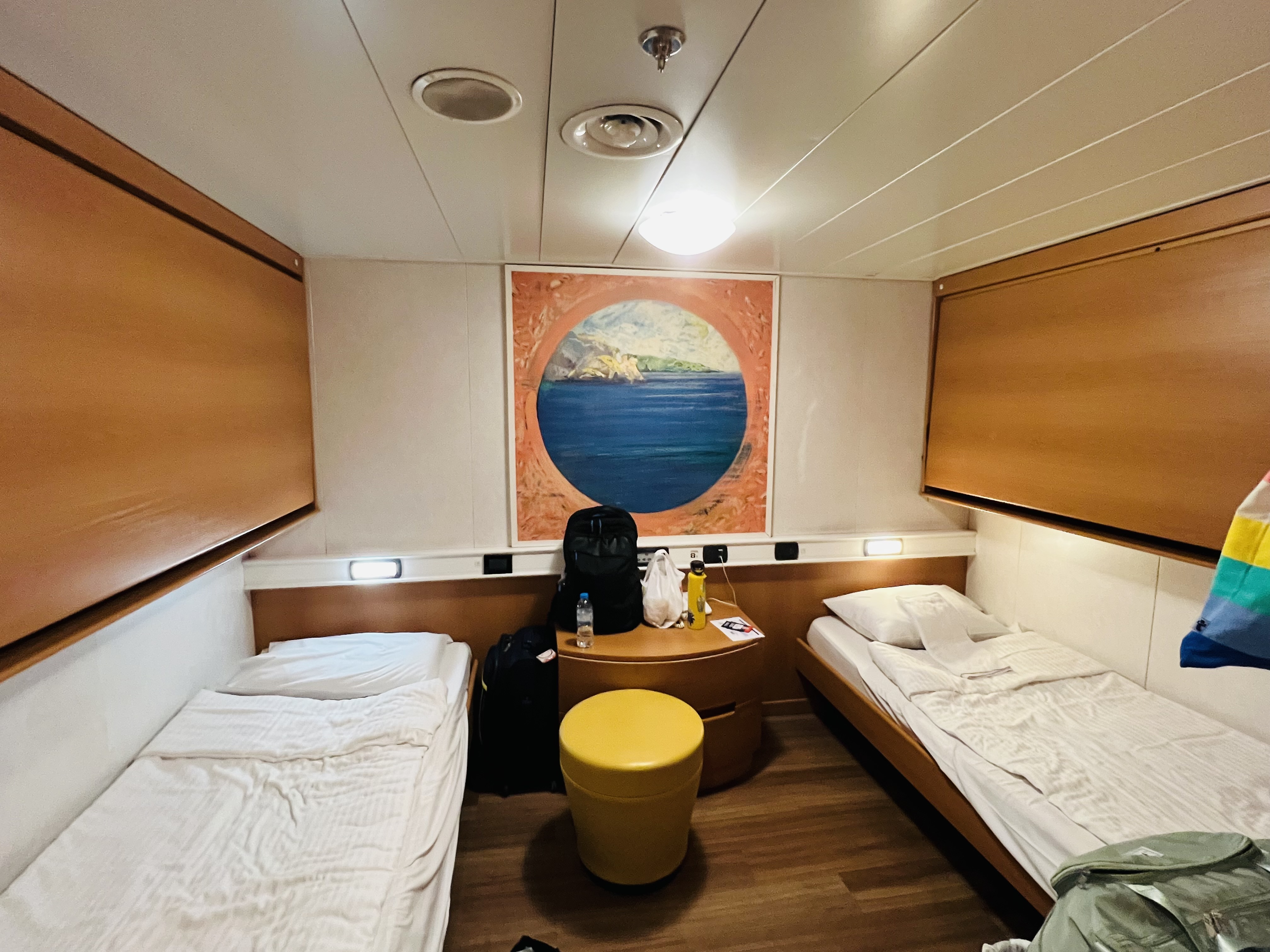 If you’re traveling longer distances, definitely consider the overnight ferry option. We took the overnight ferry from Athens to Heraklion, Crete and had a good experience. It leaves typically around 9pm and you’re allowed on board at about 7pm. We got to our room and were able to settle in before take off. We opted to do a private room with a bathroom and it was lovely being able to take a shower before bed. We docked in Heraklion shortly after 6am, so we basically didn’t waste any time. The ferry had two gift shops in case you forgot anything as well as several dining areas and sitting areas where you can lounge if you have a room without windows – or you opted to book a seat.