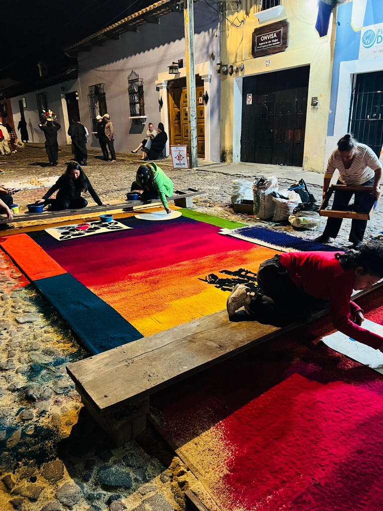I’ve been to Antigua two times before – in fact, I actually got married there! But I have never seen the town so full and so vibrant as during Semana Santa. As someone who grew up in the Catholic Church, I was used to the themes surrounding Holy Week and Easter. But I found myself awed by the devotion and dedication that the bearers have during Semana Santa in Antigua.