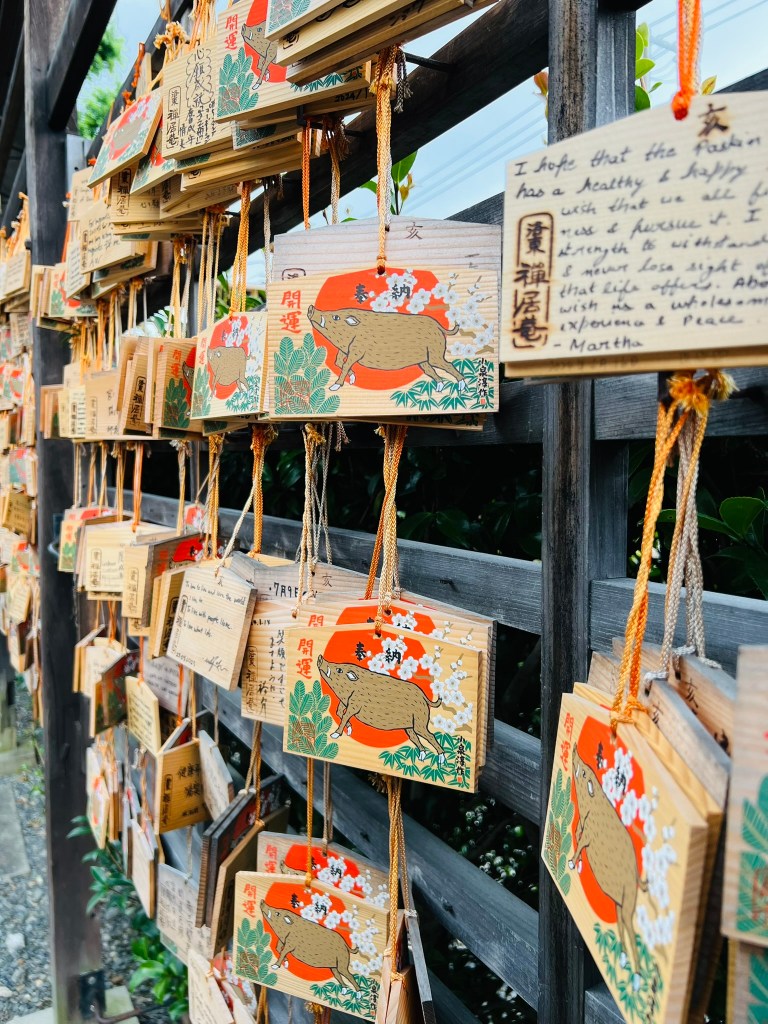 We walked around Gion for a bit, enjoying the architecture and just letting whimsy guide us. We ended up stumbling on the Go-ō Shrine, the cutest little shrine with hundreds of little boar figurines. Commonly known as the “Wild Boar Shrine”, the boars originate from a shrine legend that tells the story of Wake no Kiyomaru’s path to exile, during which he was attacked and suffered a leg injury, but was saved by 300 wild boars that protected him until the end of his journey.