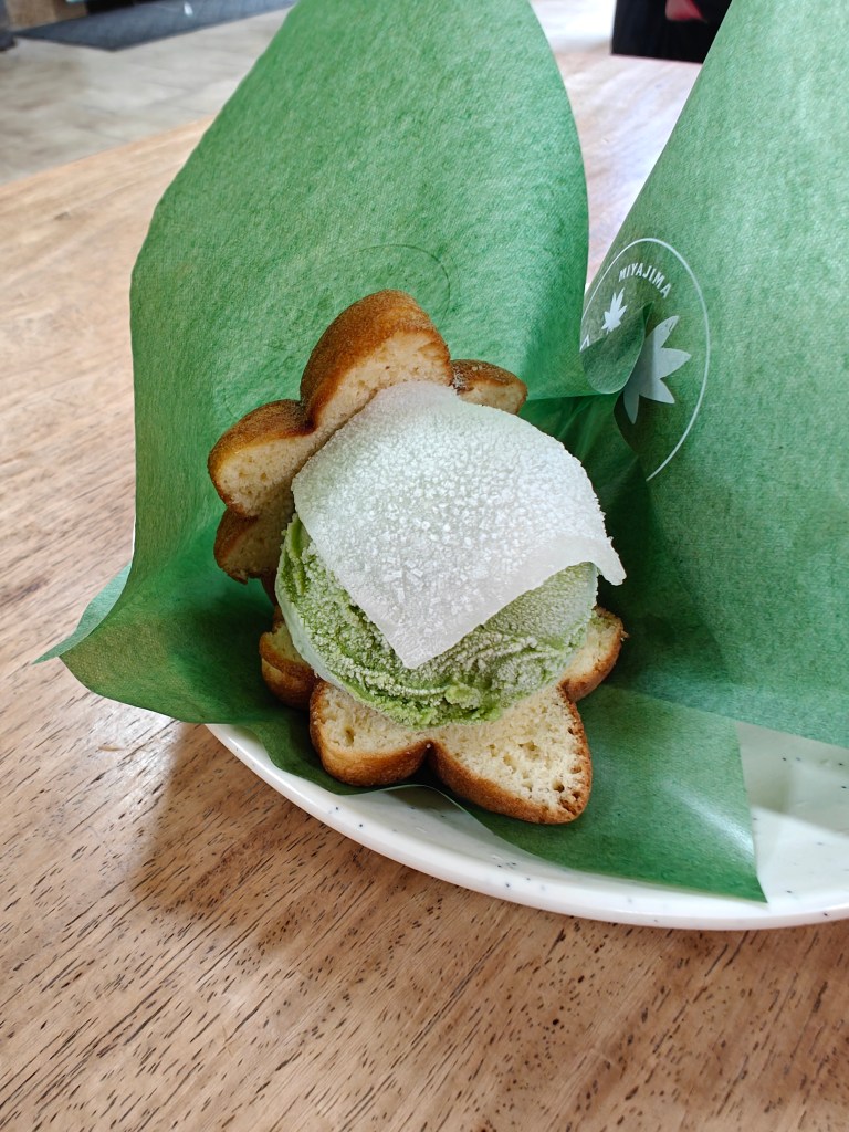 We walked along the main shopping streets for a little bit, checking out the local Miyajima snacks. They’re well known for their maple leaf shaped Manjū, which makes a great gift to bring back home. We also found some delicious Grand Torii Gate shaped sable cookies to bring back as souvenirs.