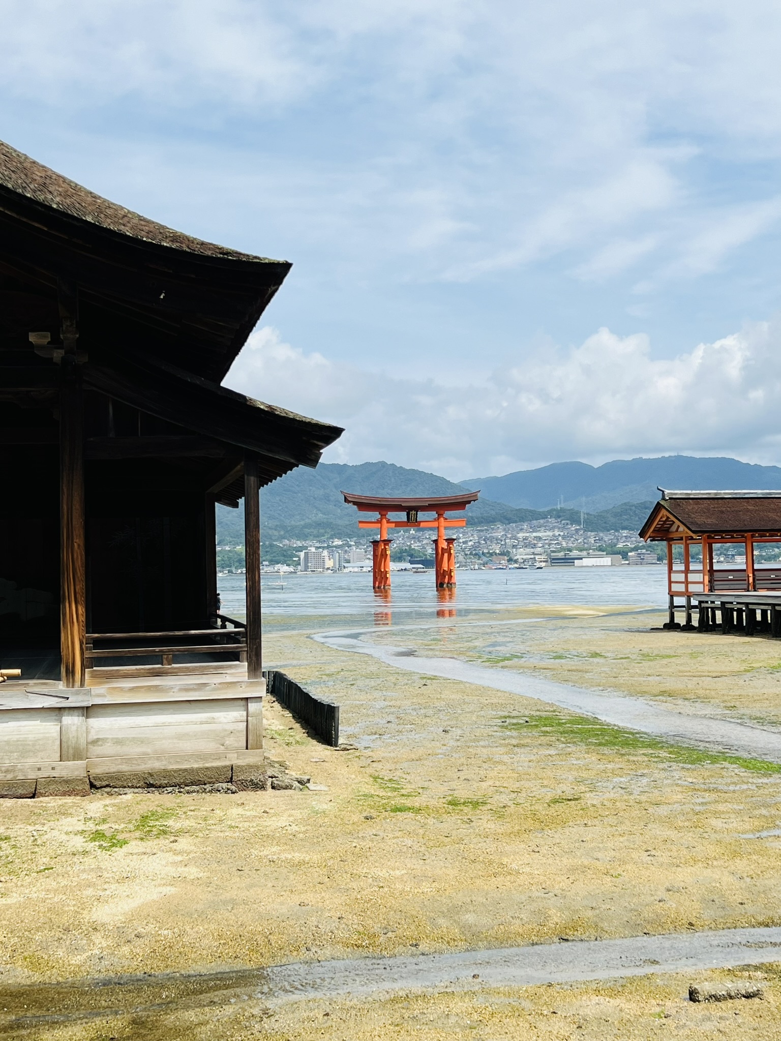 We visited on the tail end of low tide, so you can still kind of almost walk up to the Grand Torii Gate. It was honestly really cool to see the Grand Torii Gate as well as the Shrine itself at low tide, as everything was visible. By the time we left several hours later, it was pretty close to full high tide, so we got to see the “floating” aspect of the Grand Torii Gate as well. There’s a walking path to the right as you exit the Shrine that makes for great photo ops as well.