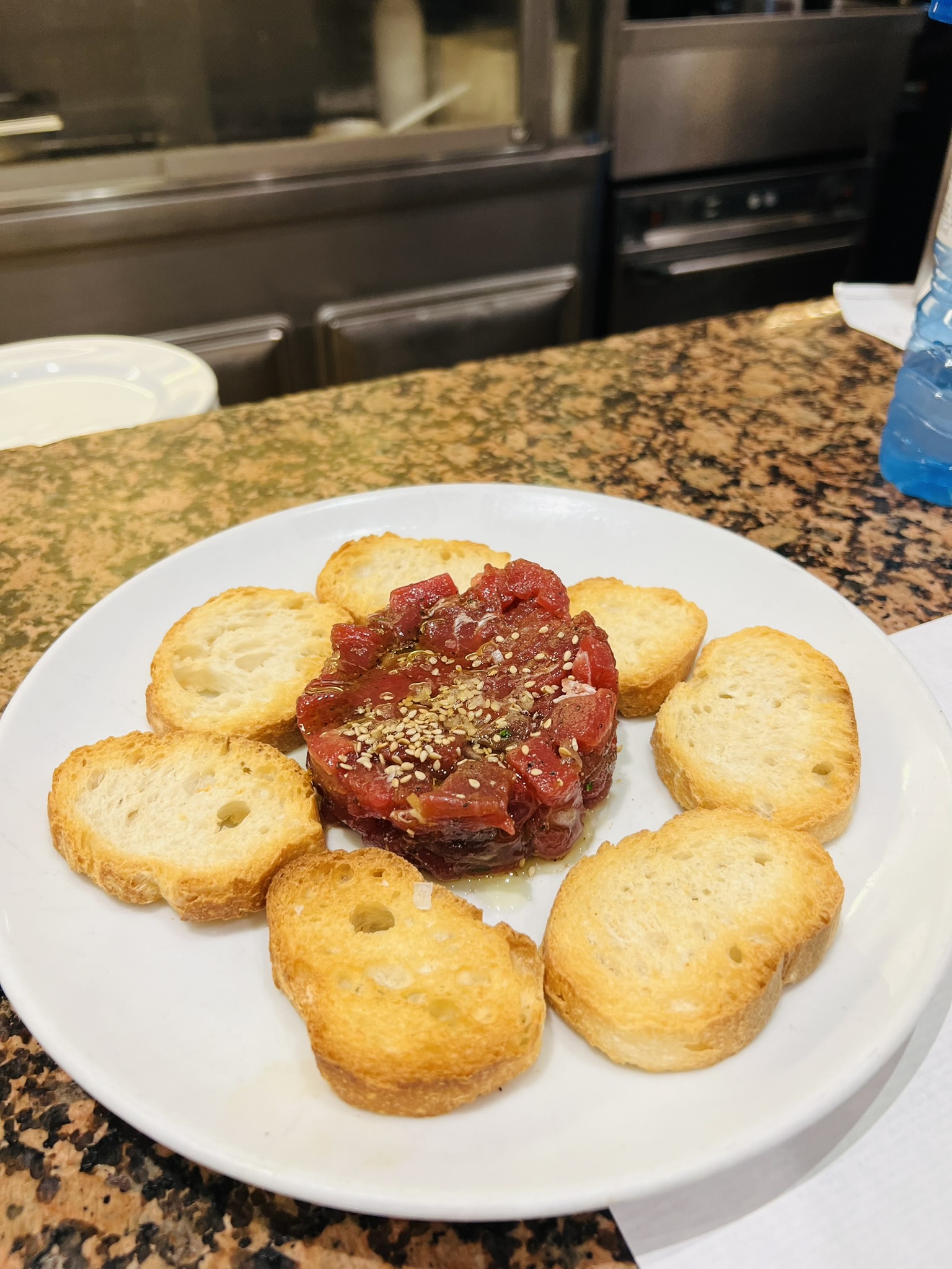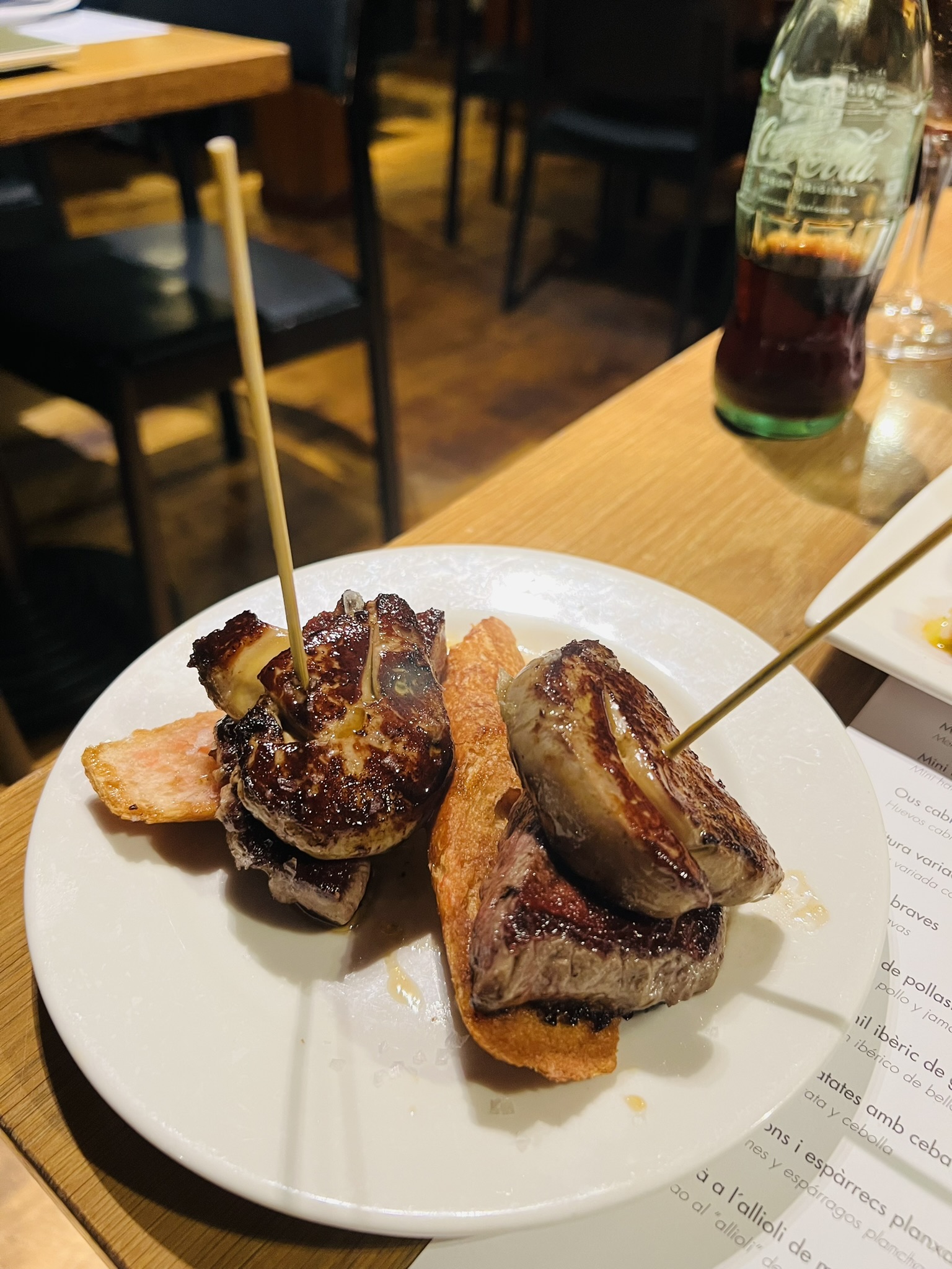 Ciutat Comtal, or Ciudad Condal, is a spacious tapas bar located in the heart of Barcelona. They have an extensive tapas menu with the classics as well as daily montaditos and specials. The montaditos are small little bites, packed with flavor. The tenderloin and foie gras montadito is absolutely decadent, but their Galician-style octopus and scallop + shrimp montadito are the showstoppers.