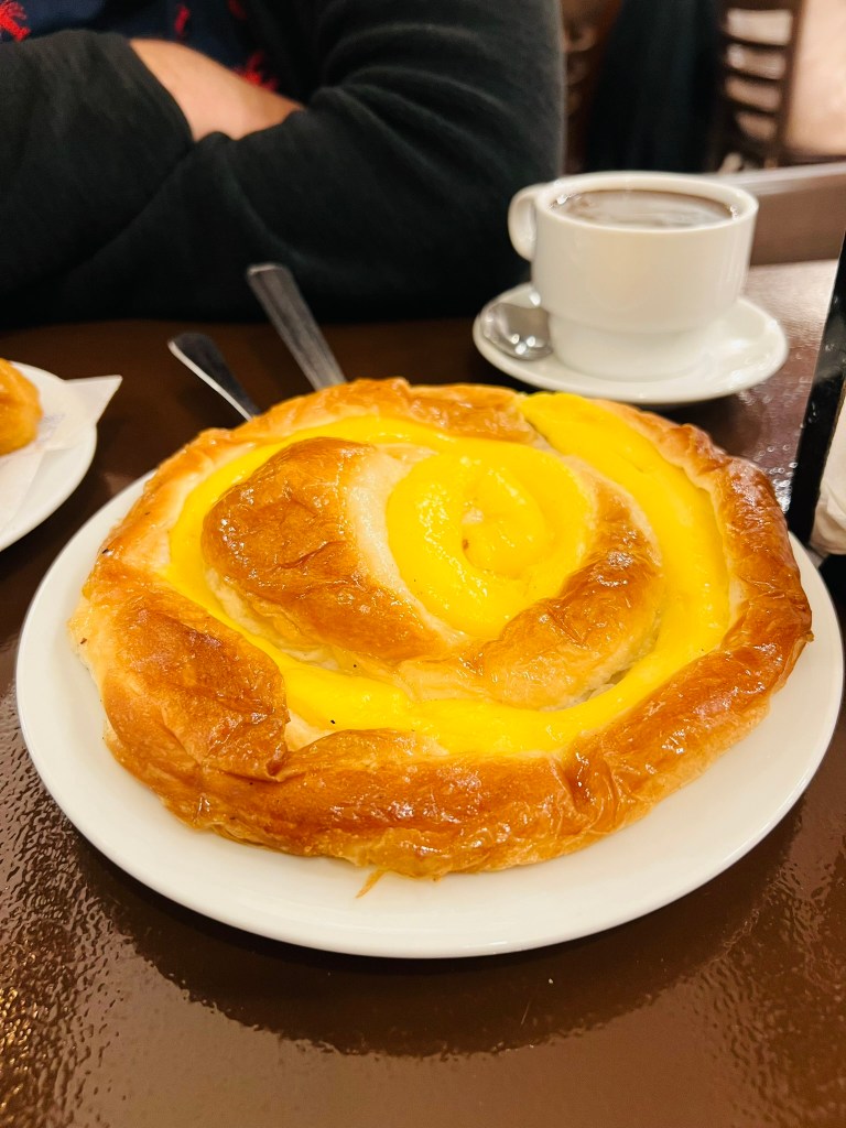 Founded by Juan Mach and Elvira Farràs, Granja Dulcinea has been serving sugar-coated churros, smooth hot chocolate, and pastries in the Gothic Quarter since 1941. Their drinking chocolate, made with dark chocolate, is sweet and thick, making it perfect for dunking churros in. We also had an Ensaïmada Mallorca cake. Ensaïmada is a Mallorcan coil-shaped pastry and ours had this super delicious and creamy custard in the middle. Ths was so delicious and I wish we had these back home!