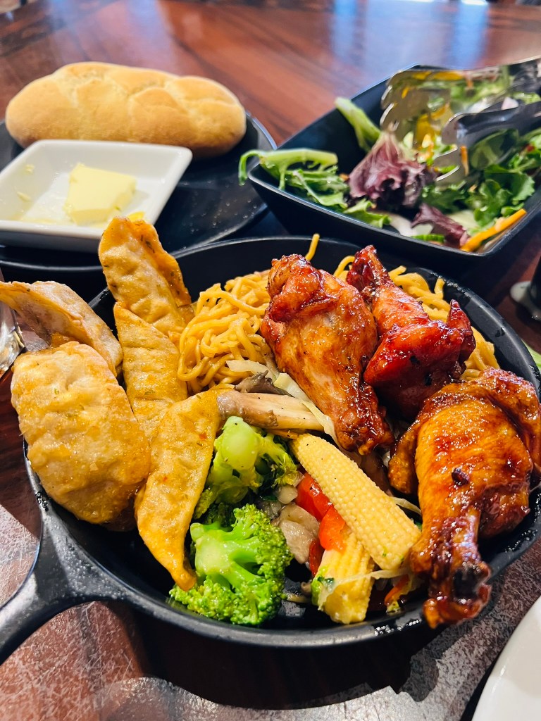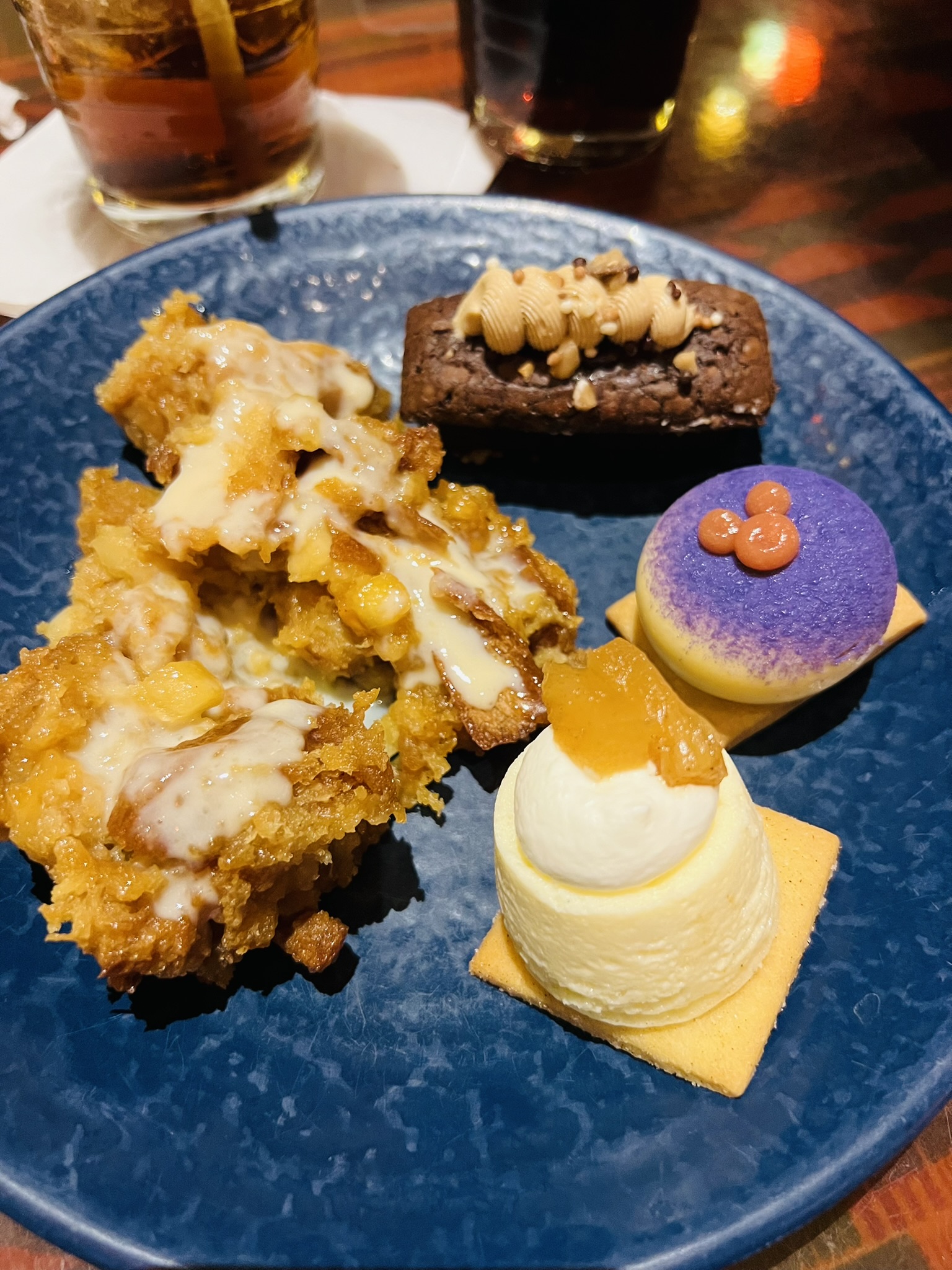 And lastly, we ventured over to the Polynesian Village Resort to visit ‘Ohana. ‘Ohana is a Polynesian-themed restaurant located at Disney’s Polynesian Village Resort, serving family-style meals with live ukelele music. You start off your meal with ‘Ohana bread with honey butter and salad. Appetizers include Honey-Coriander Chicken Wings, Fried Dumplings, and ‘Ohana Noodles with Mirin-Teriyaki and Stir-fried Vegetables. Your entree is the ‘Ohana Dinner Skillet with grilled teriyaki beef, spicy shrimp, and grilled chicken with Polynesian-inspired chimichurri sauce. The meal is finished with ‘Ohana Bread Pudding, a heaping serving of the most luxurious ice cream.