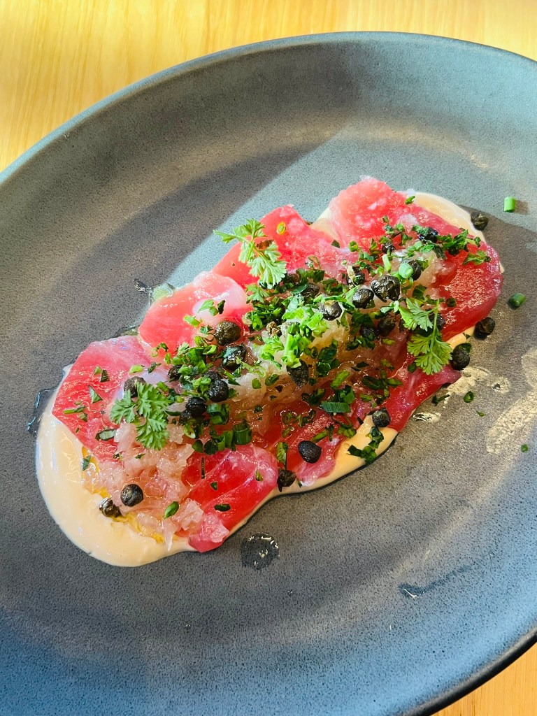 Mariscos San Pedro is a Mexican seafood restaurant that offers a diverse menu featuring both raw and cooked seafood dishes. I had come in with a sort of game plan, but my waiter ended up talking me into more food than I had originally planned. My favorites were the Tuna Tostada and the Shrimp Gobernador Taco. Their Shrimp Gobernador actually earned the “Taco of the Year” award in 2024! The Tuna Tostada was fresh, vibrant, and flavorful. The Shrimp Gobernador Taco was so tasty – essentially grilled cheese with shrimps and then thrown into a corn tortilla. I would order a whole order of this next time. The flan was very good – very jiggly, but also I loved the passion fruit sauce on top. I love the contrast between the tartness of the passion fruit and the sweetness of the flan itself.