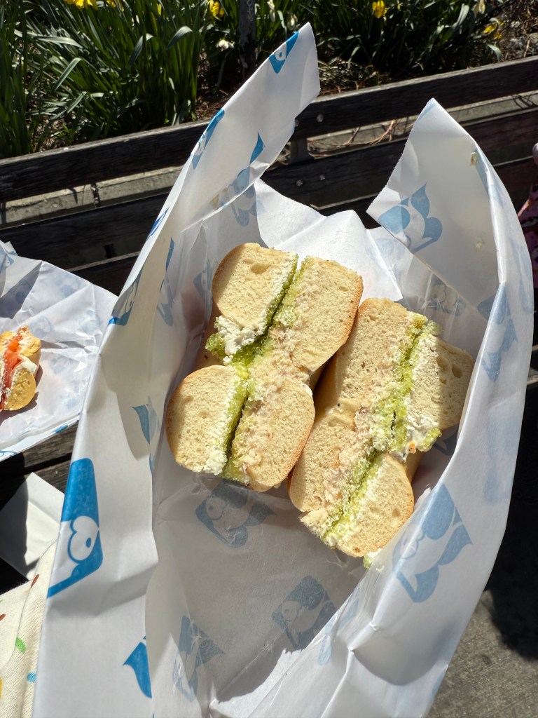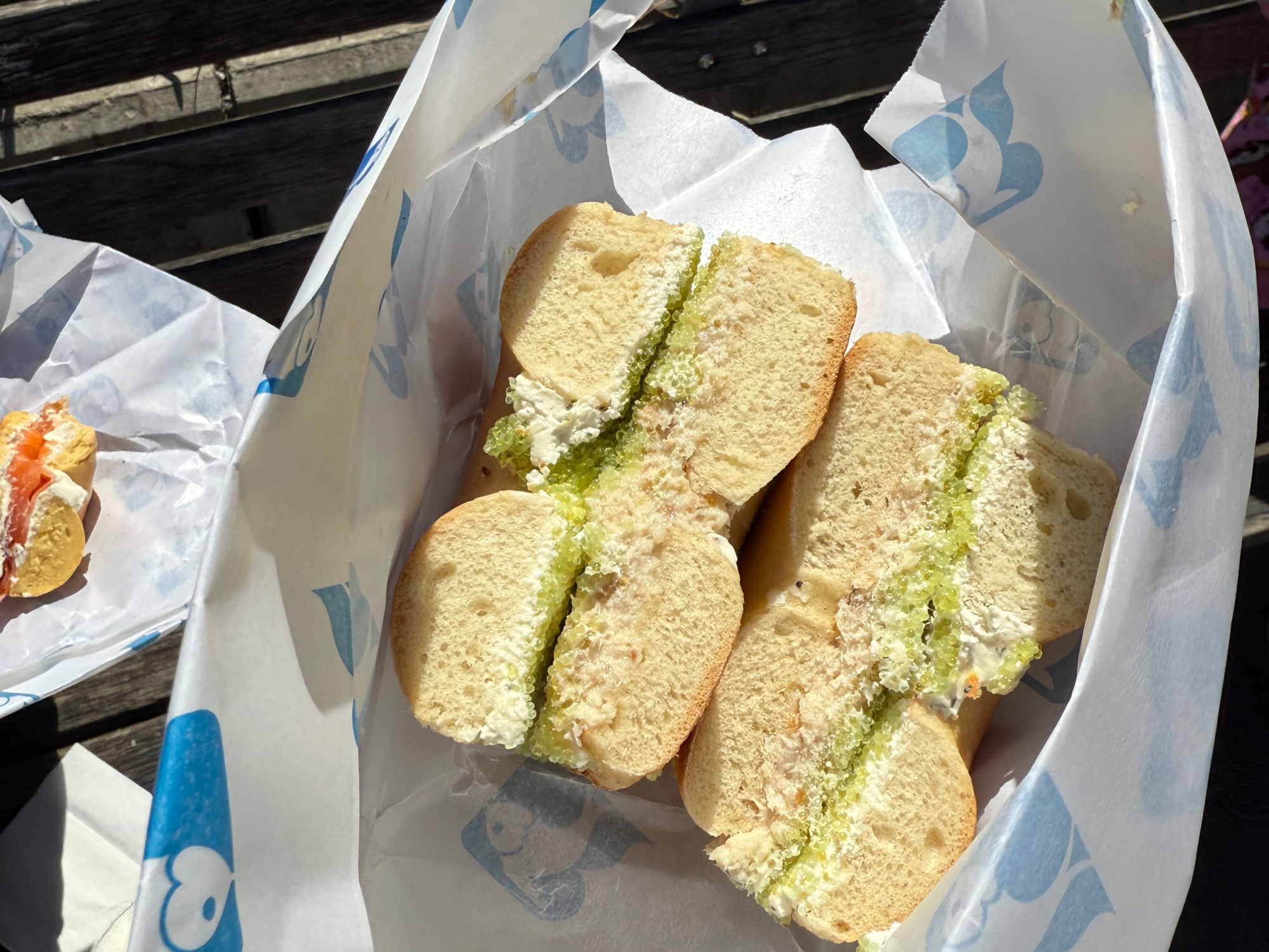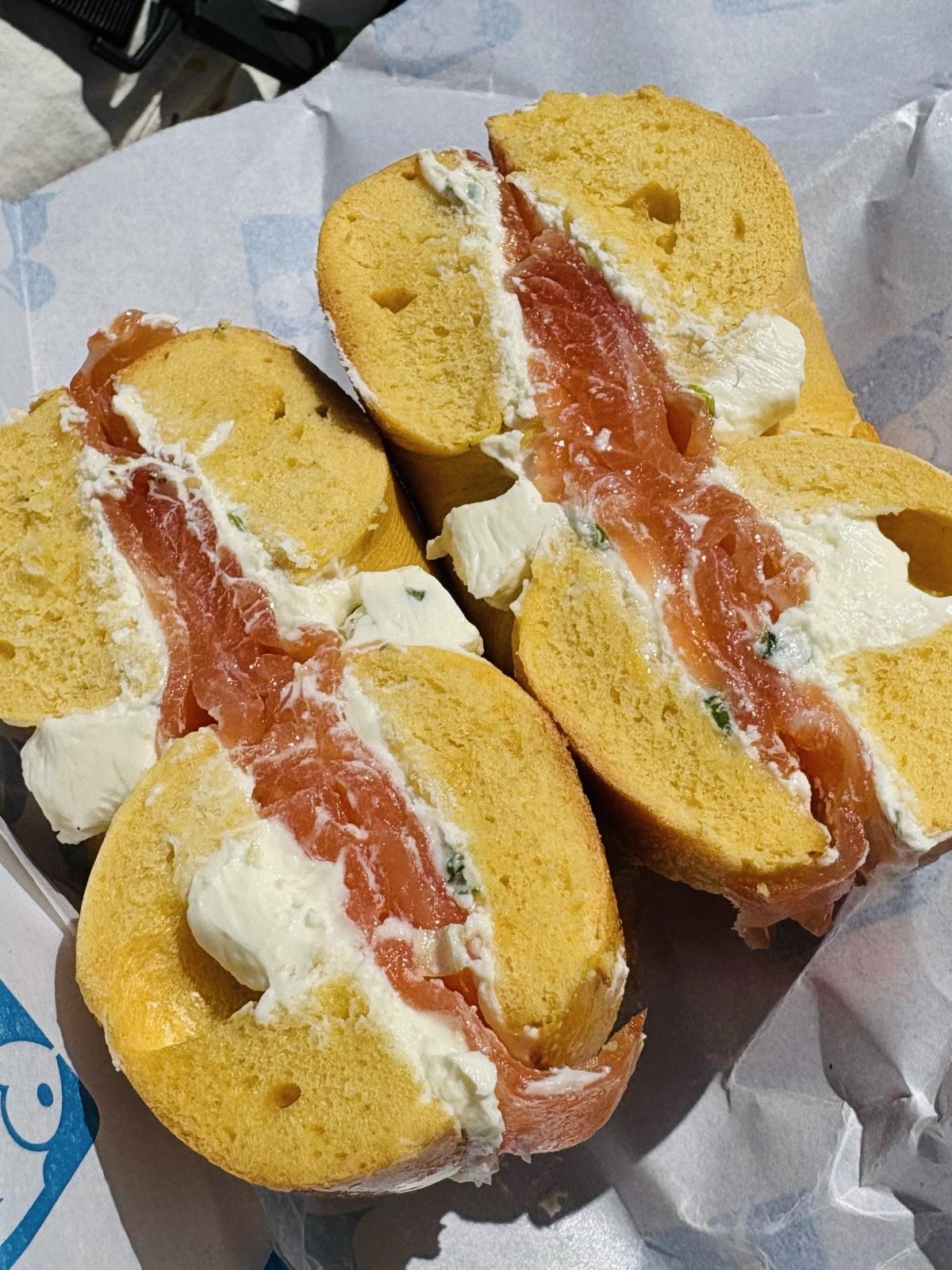 The tour started off at Russ & Daughters, a Lower East Side staple known for its smoked fish, bagels, and traditional deli fare. Established in 1914 by Joel Russ, a Jewish immigrant from Poland, the business began as a pushcart selling herring. The storefront, where it still remains today, opened in 1920, and is currently still operated by fourth-generation family members. Russ & Daughters is celebrated for its commitment to preserving Jewish culinary traditions. Their Classic Bagel & Lox Sandwich is a must-have item. We also had the Super Heebster, which was filled to the brim with creamy whitefish and salmon salad and wasabi flying fish roe. Get there early, grab a ticket, and wait for your classic NYC bagel experience.