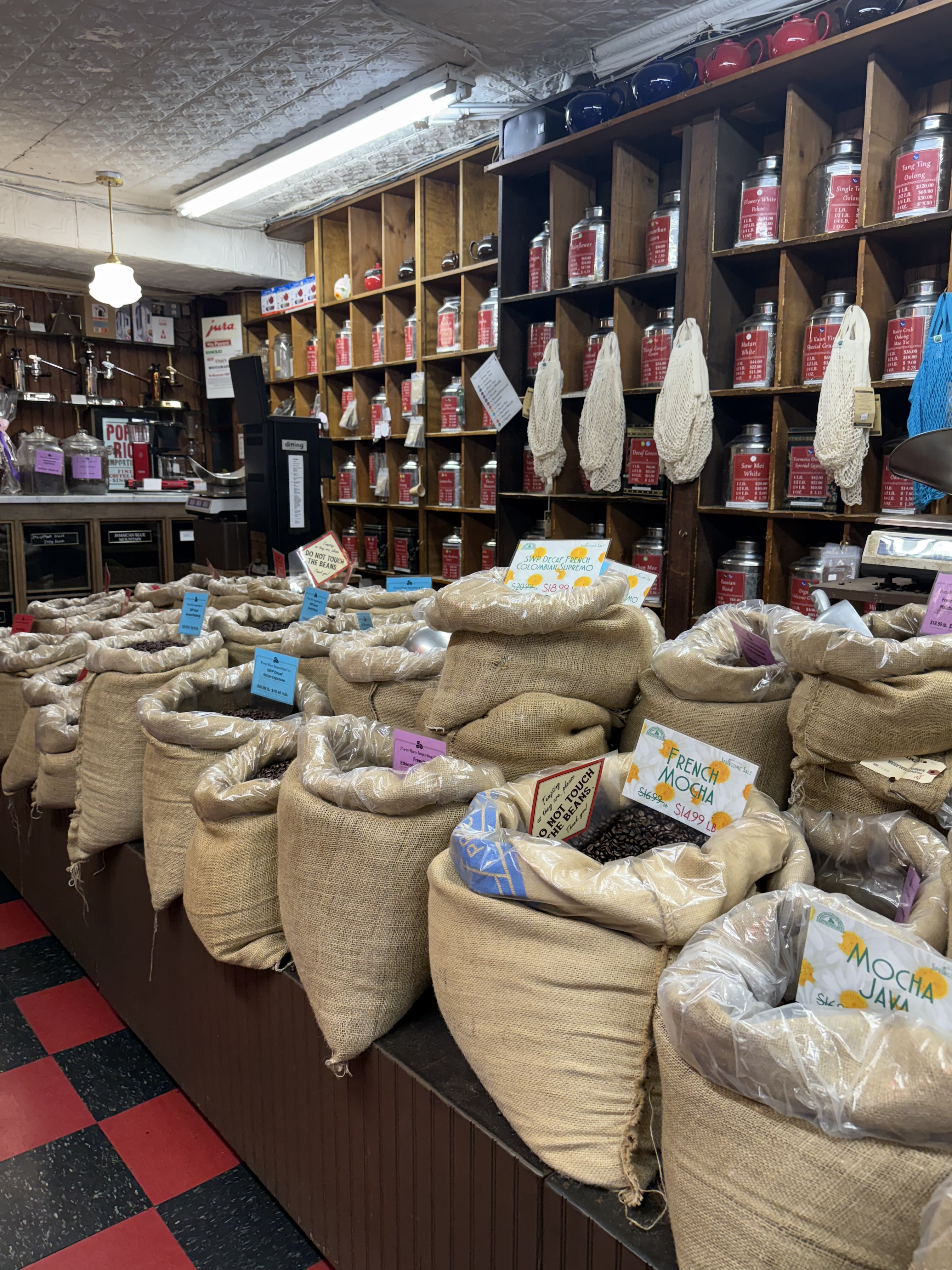 The fourth stop of the tour is in Greenwich Village, at Porto Rico Importing Co., a cherished New York City institution known for its dedication to quality coffee and tea. Established in 1907, Porto Rico now offers over 130 varieties of coffee beans sourced from 28 countries. The coffee is roasted daily at their Williamsburg facility and delivered fresh to their 4 NYC locations. The back of the shop has a little coffee stand, where you can order your caffeine hit of choice.
