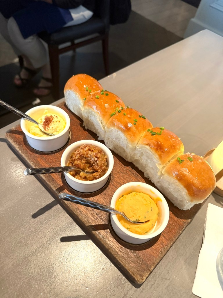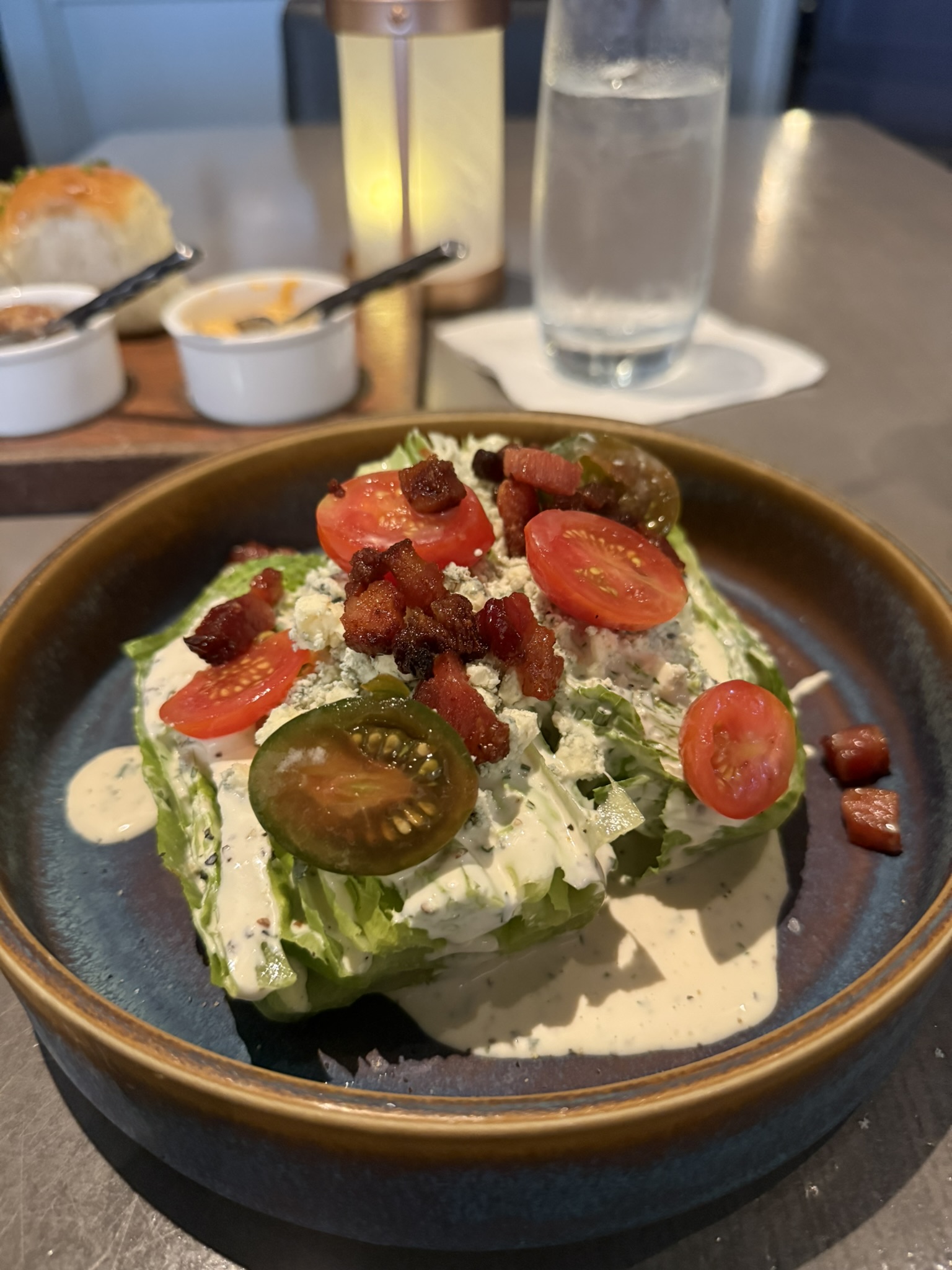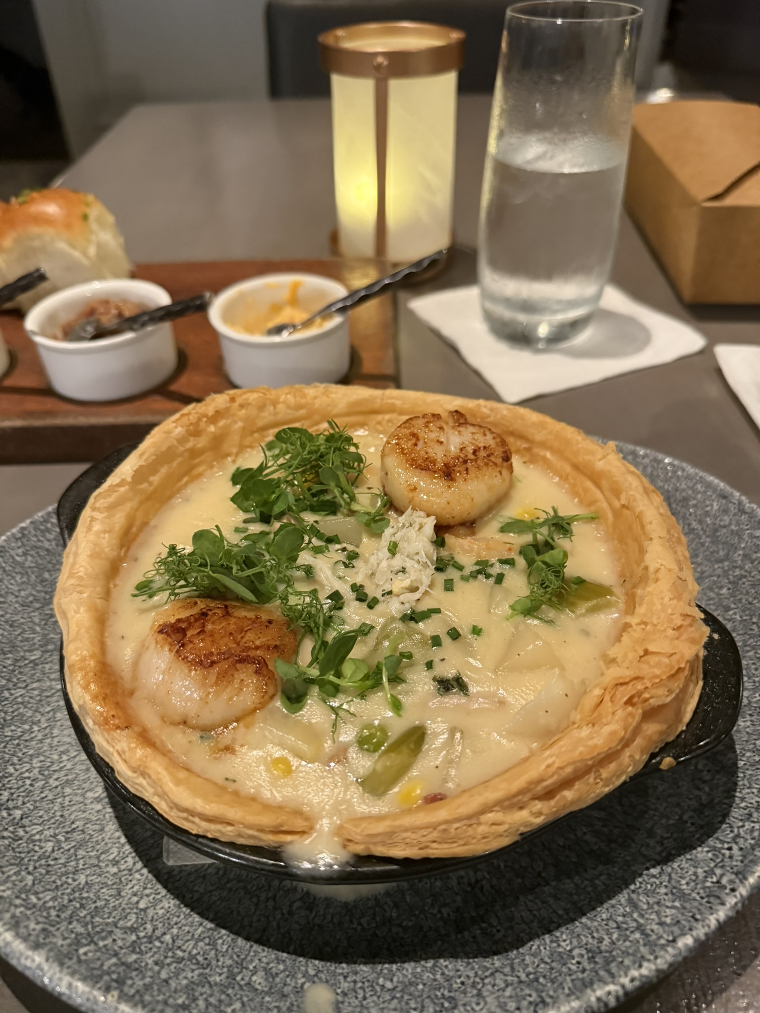 I highly, highly recommend ordering the Parker House Rolls as your appetizer. The rolls are super fluffy and the spreads are fantastic. The bacon jam was sweet and salty, and was a close contender for top spread, which belonged to the pub cheese. The Wedge Salad is also very good with the garlic-peppercorn cream sauce. Their signature dish, the New England Seafood Pot Pie, is warm, comforting, and filled with delicious seafood.
