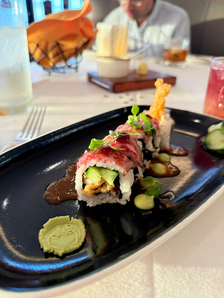 California Grill offers guests spectacular views of the Magic Kingdom, especially during Happily Ever After, the nightly fireworks display.. If you’re dining before the fireworks, you can always come back to watch the fireworks on their outdoor deck area. We arrived around 8:45PM and waited just a few short minutes for an elevator up. We had such a spectacular view of the fireworks – I argue that it’s even better than being at Magic Kingdom!